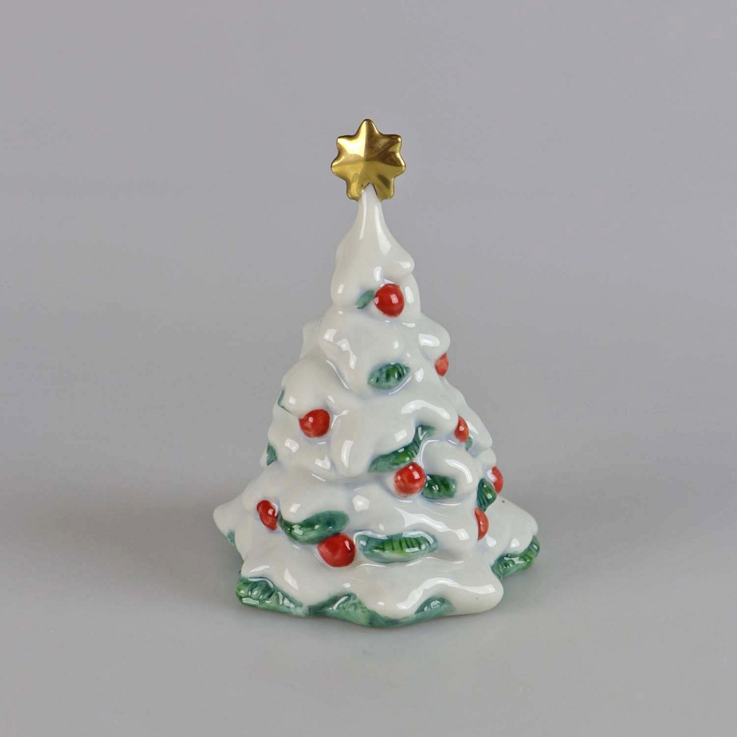 Porcelænsfigur fra mini collections serien med motiv af juletræ med gylden stjerne og røde ornamenter no 111