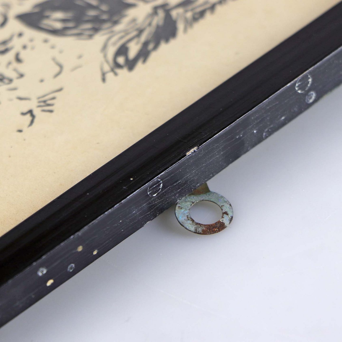 Tryk med motiv af en pige, som læser ved siden af et akvarie