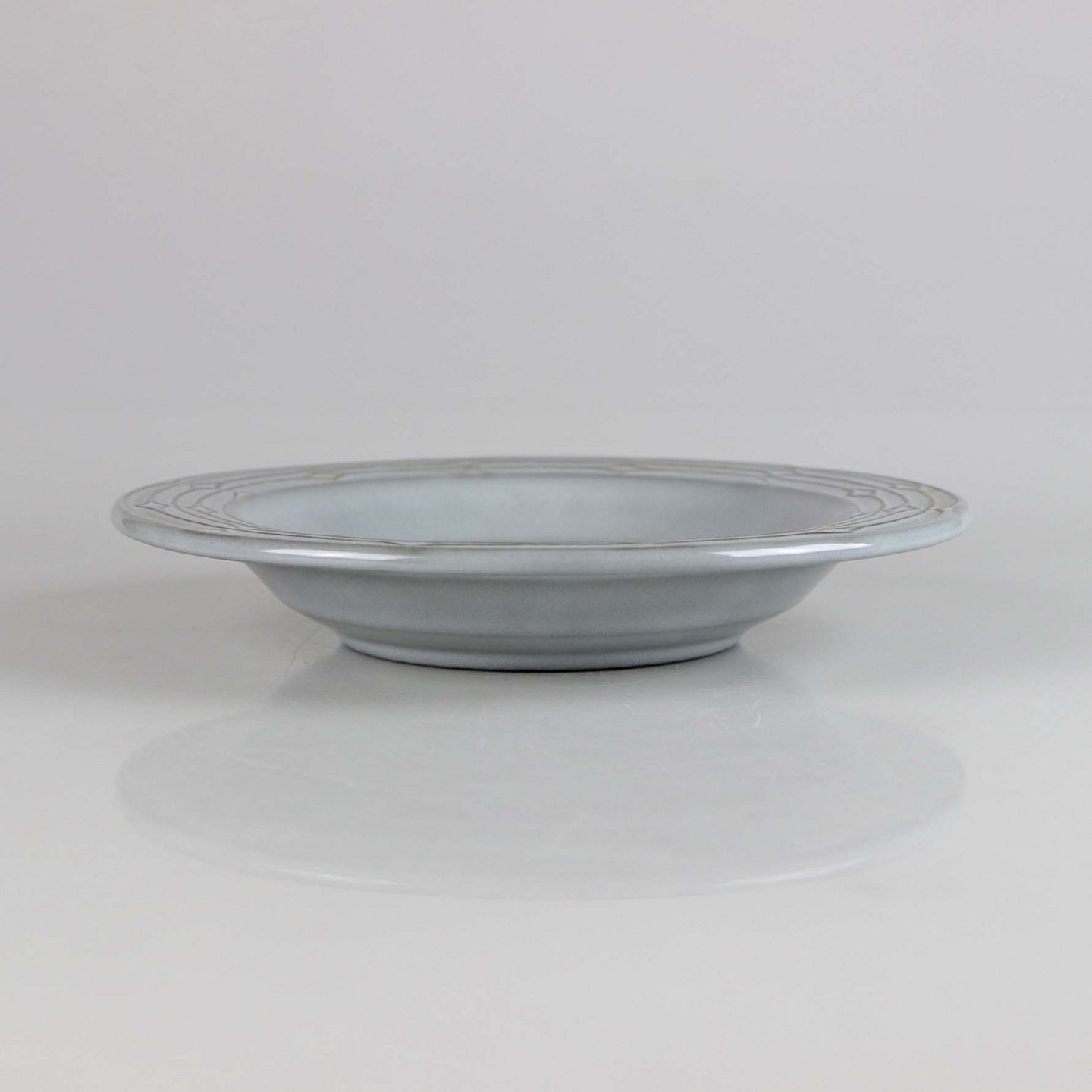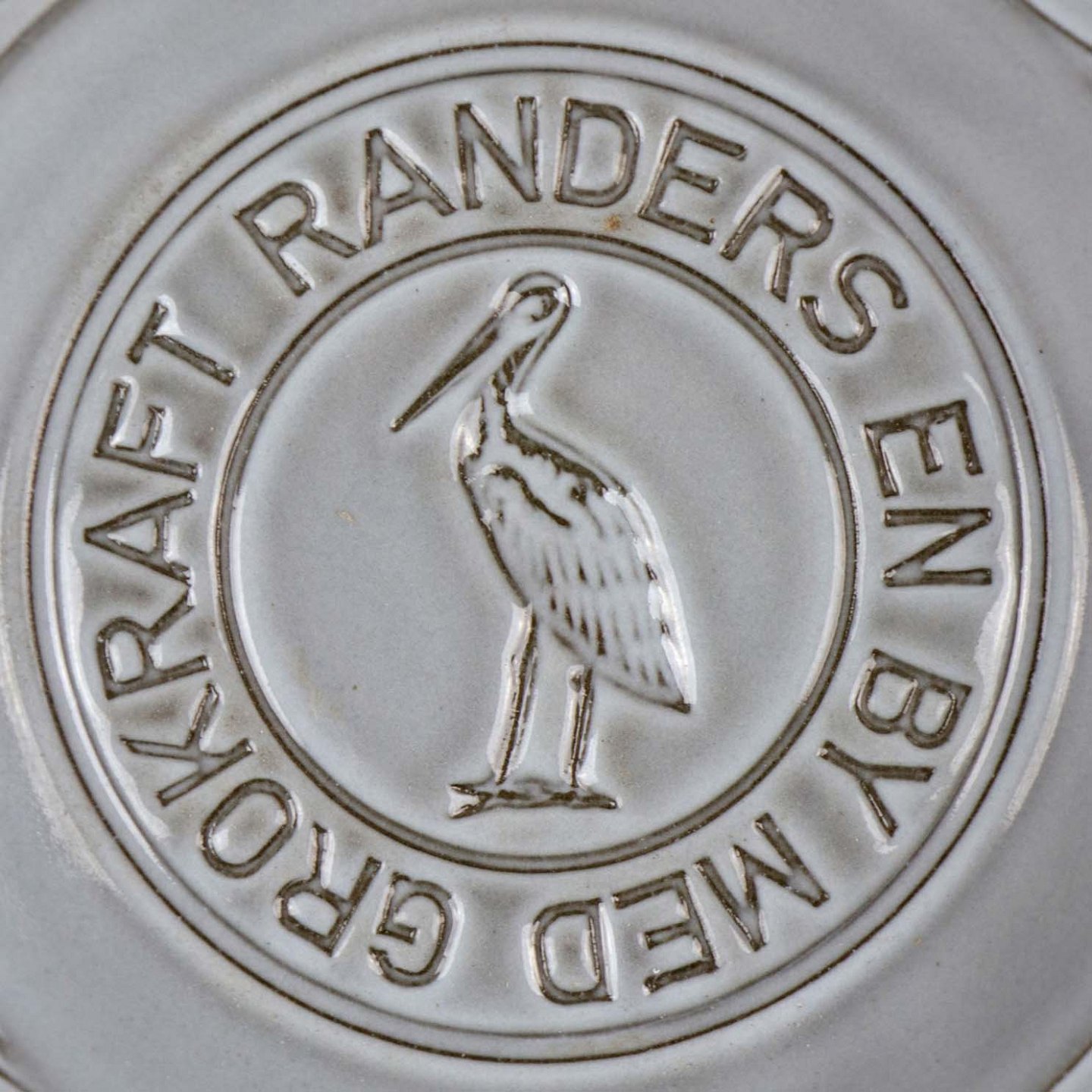Platte i gråt stentøj med teksten "Randers en by med grokraft"