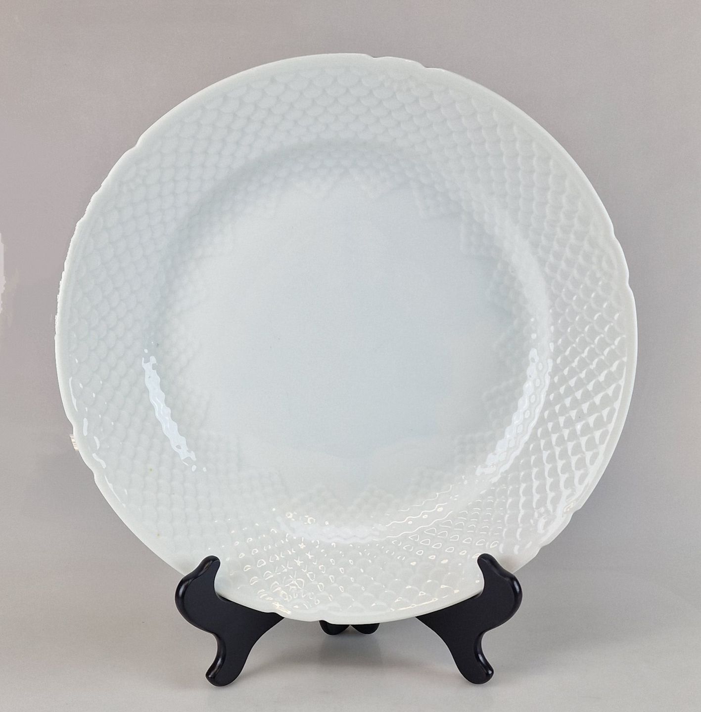 Elegance er hvidt glaseret porcelæn med et mønster af skæl
