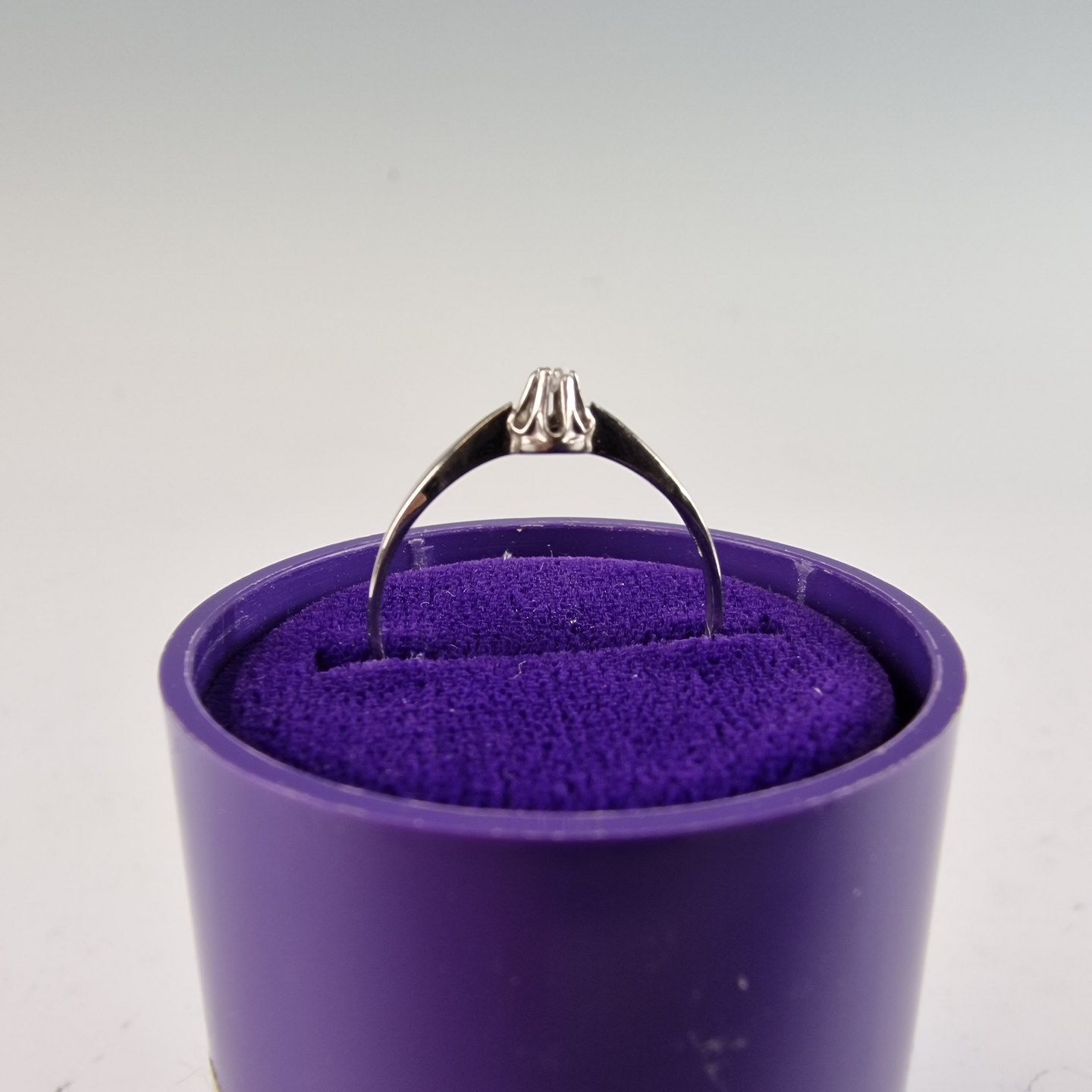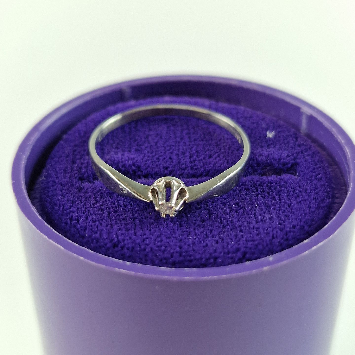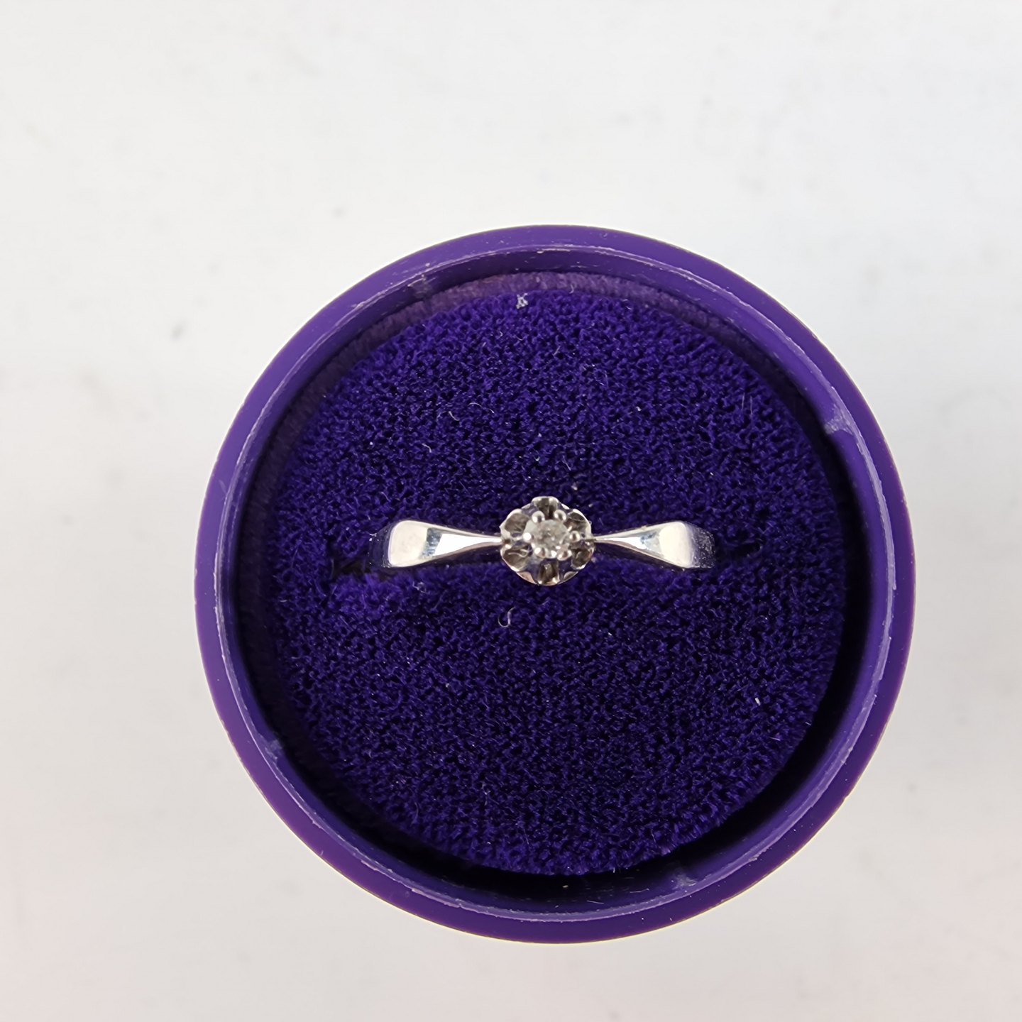Ring af hvidguld str 55 med 0,02 karat diamant. I æske