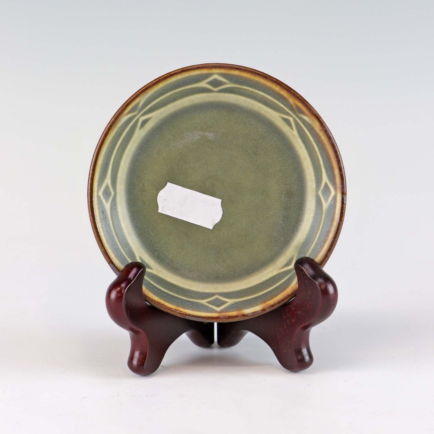 Stellet Rune er glaseret i grønne og råhvide farver med en brun kant.