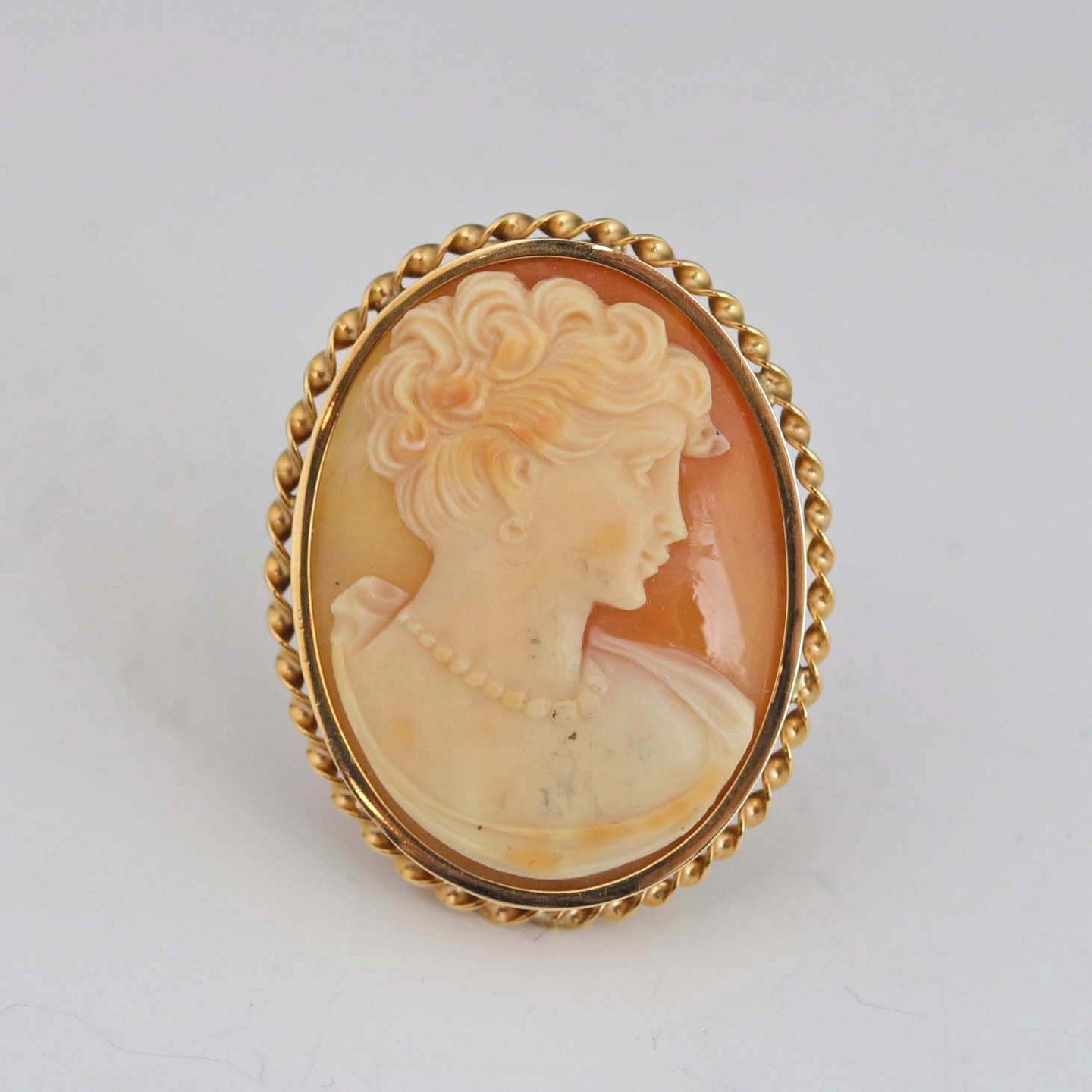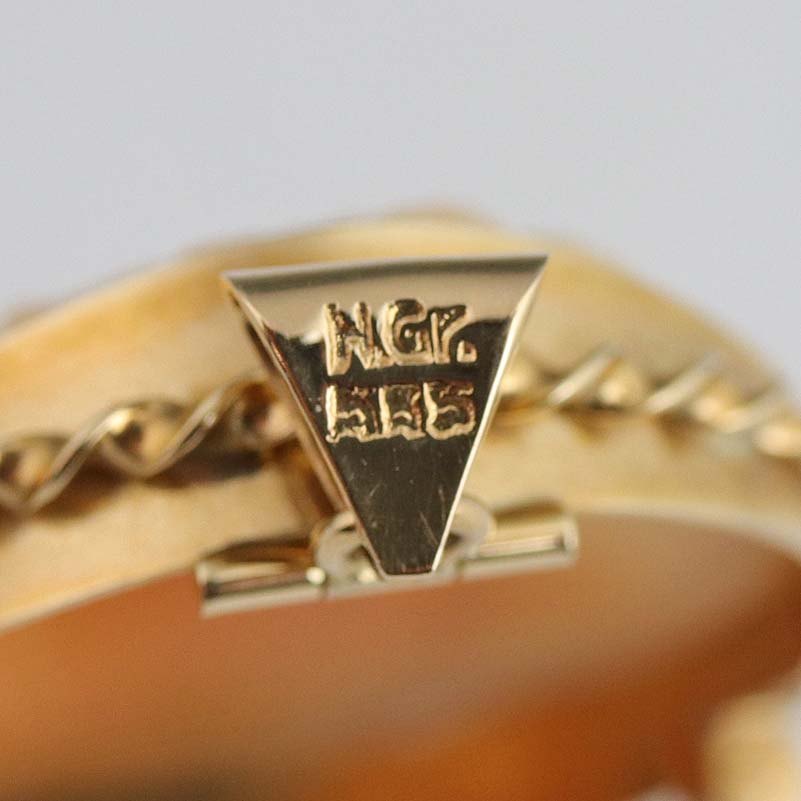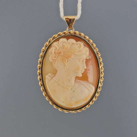 Kamé vedhæng og broche i ét med snoet ring af 14 karat guld