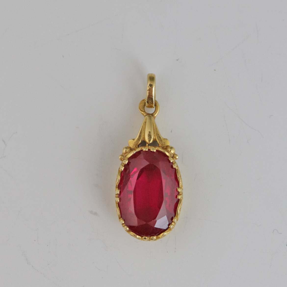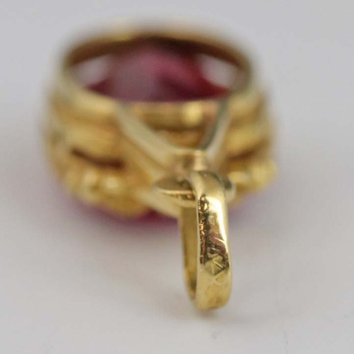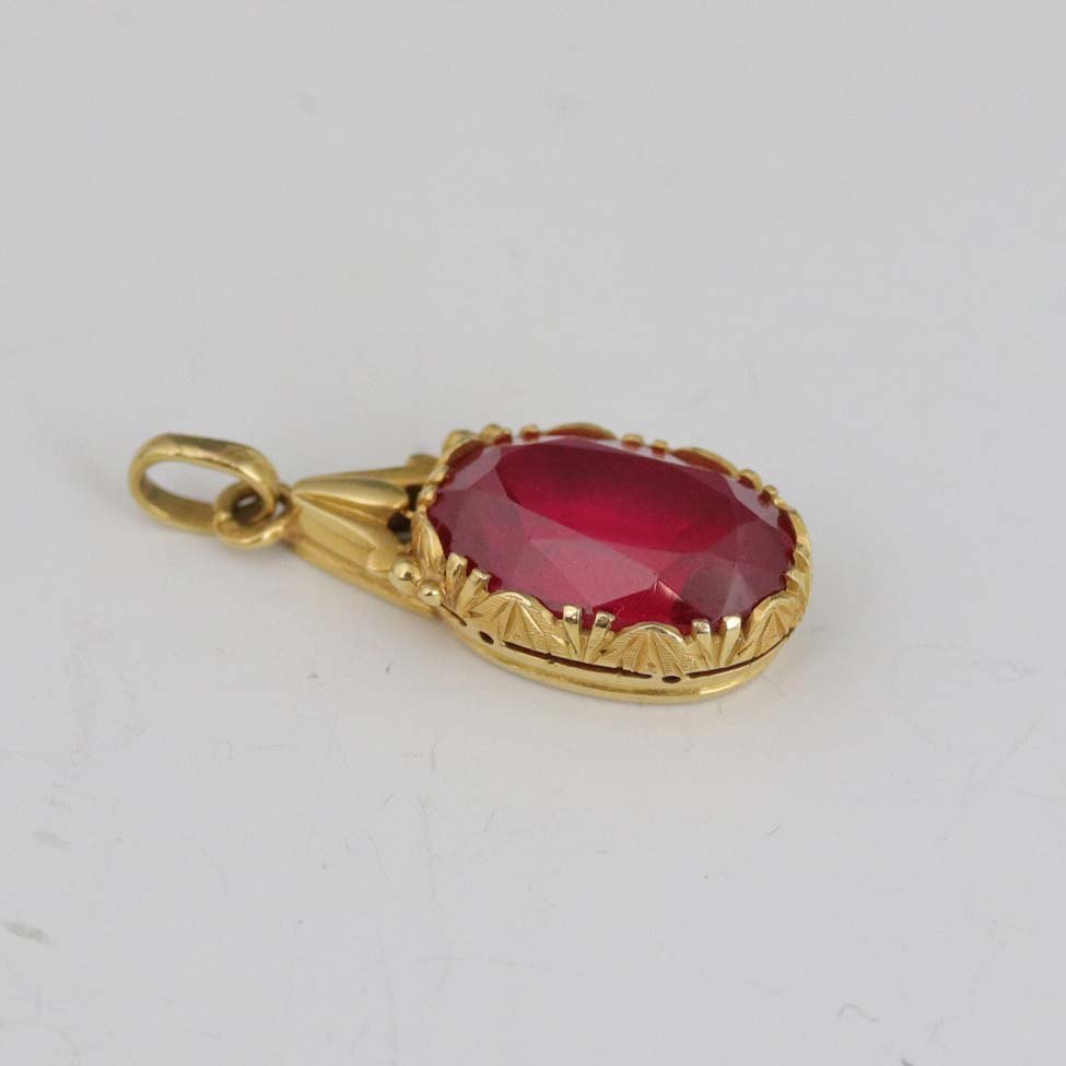Vedhæng af 18 karat guld med facetslebet rød sten