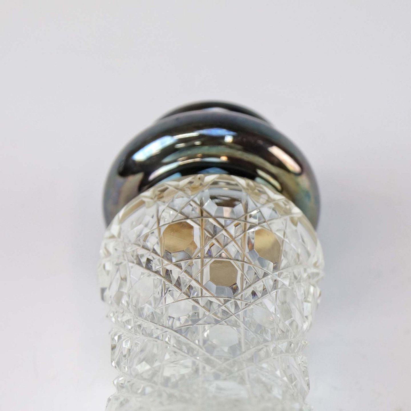 Sukkerstrøer i klart presset glas med top i totårnet sølv