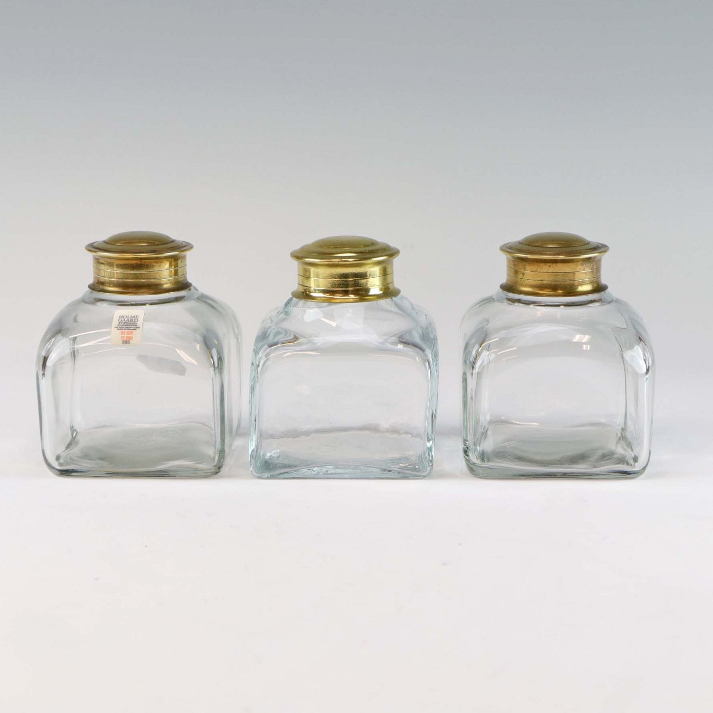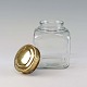 Krydderi og opbevaringskrukker i mundblæst klart glas med låg af messing