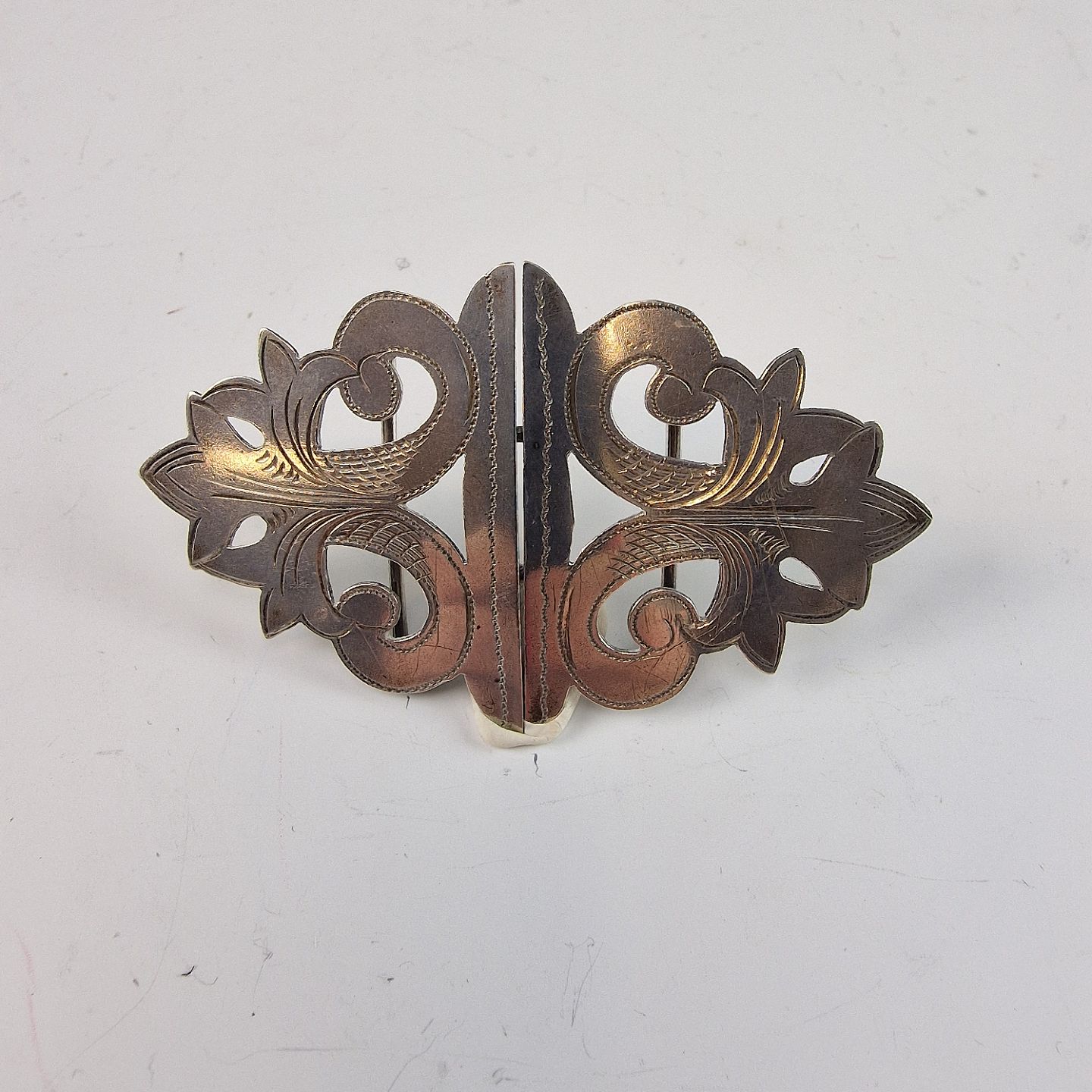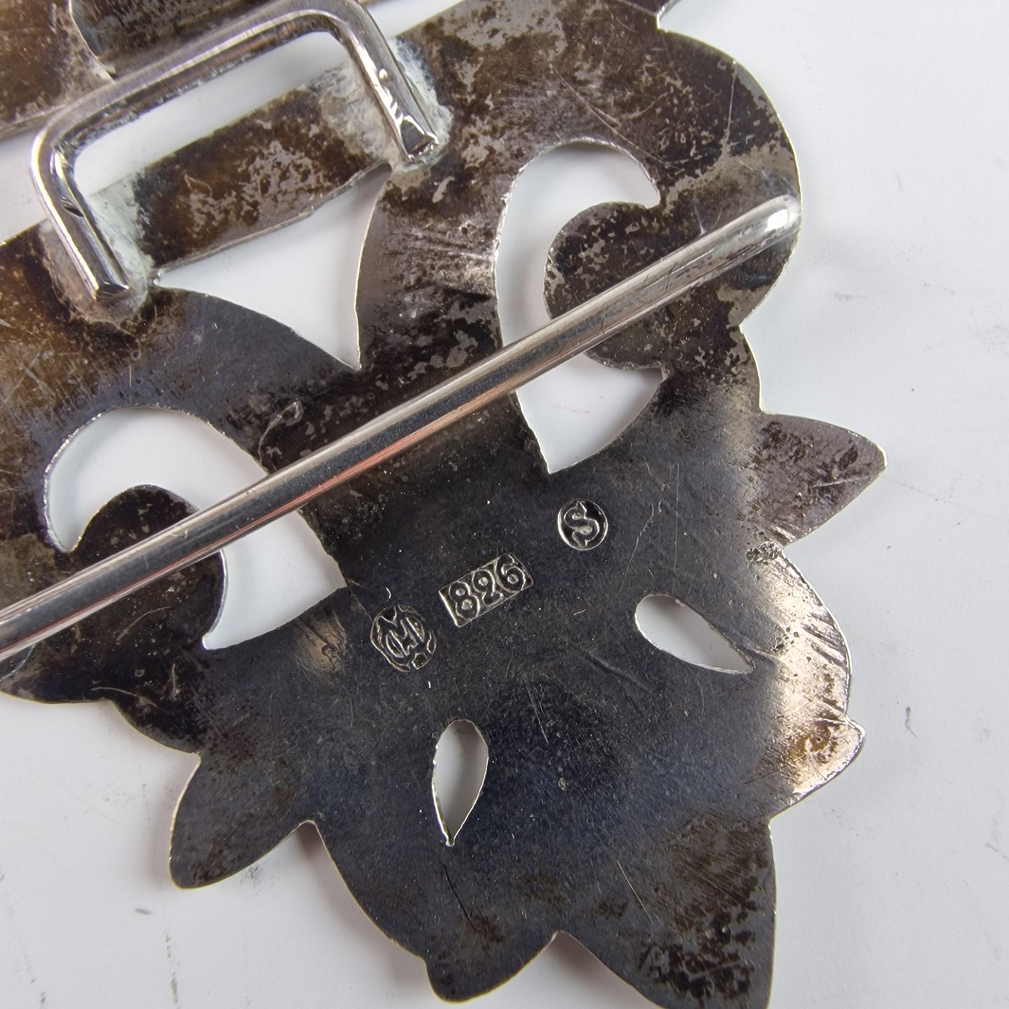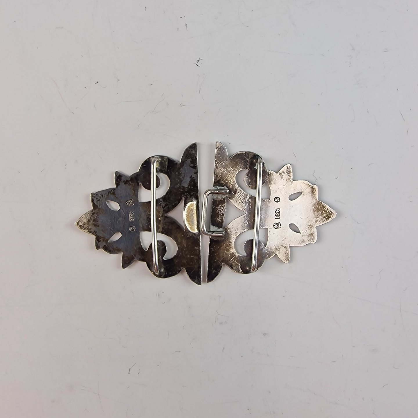 Bæltespænde i 826 sølv med kunstnerisk udformet mønster med graveringer