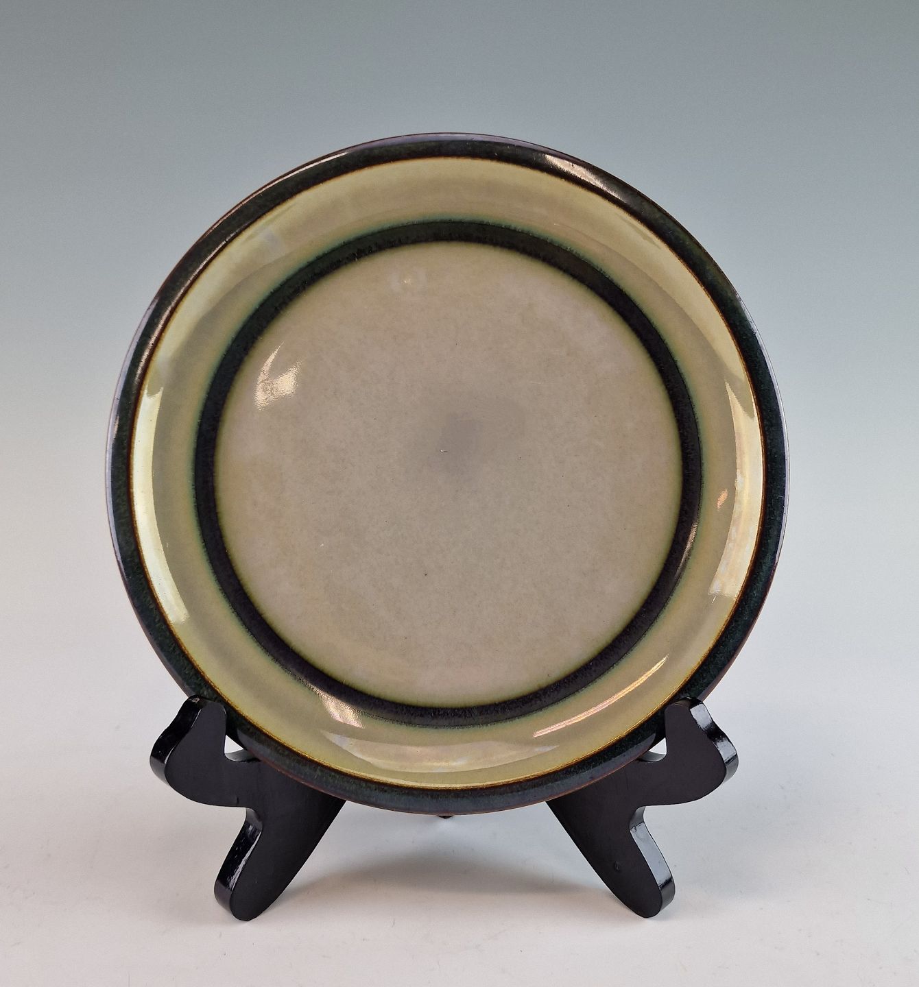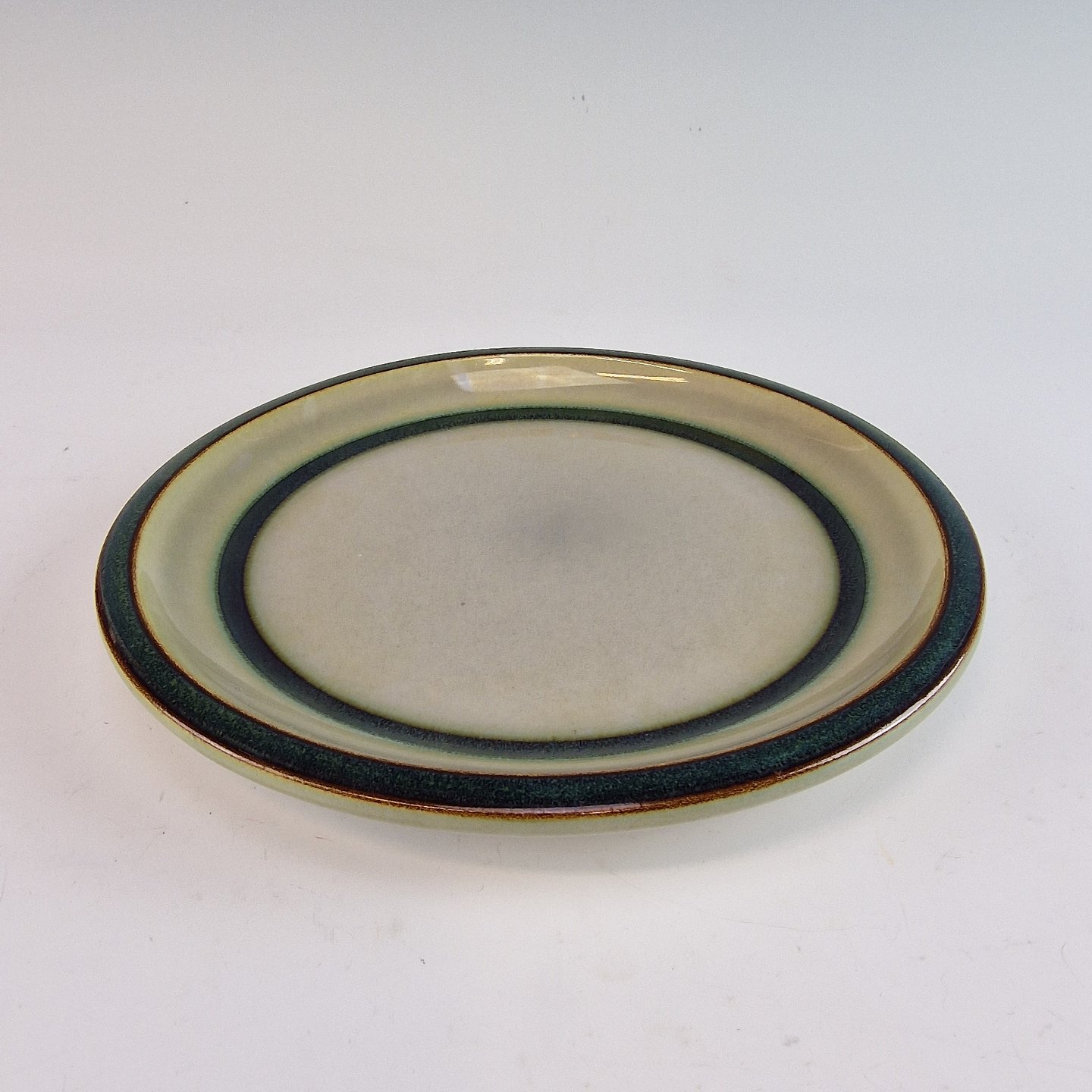 Stellet Tema er af stentøj, glaseret med lys grå og dekoreret med kanter af grønne og brune farver