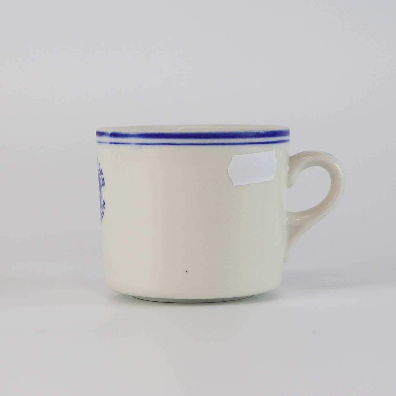 Krus af kraftigt porcelæn med teksten A.P. Møller København. No 102