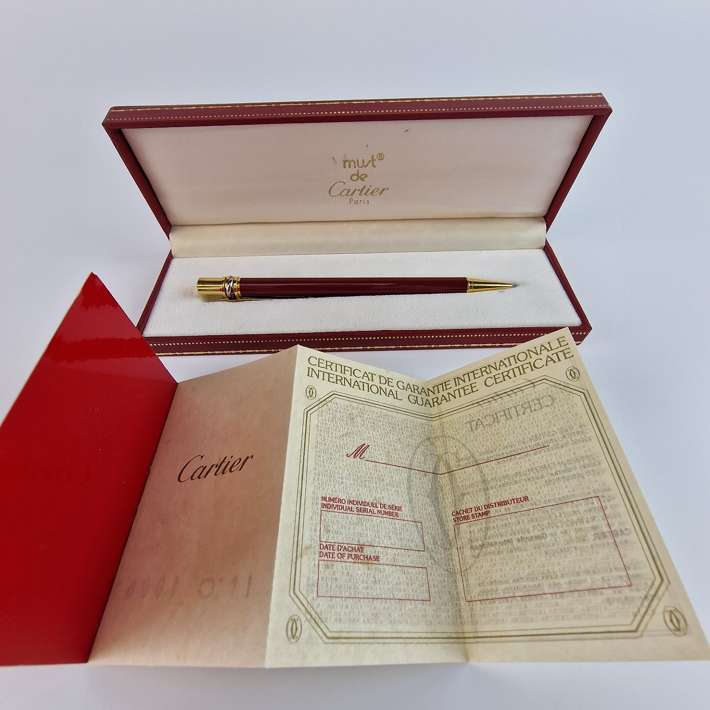 Kuglepen fra Cartier Paris i bordeaux. Leveres i æske og med alle certifikater