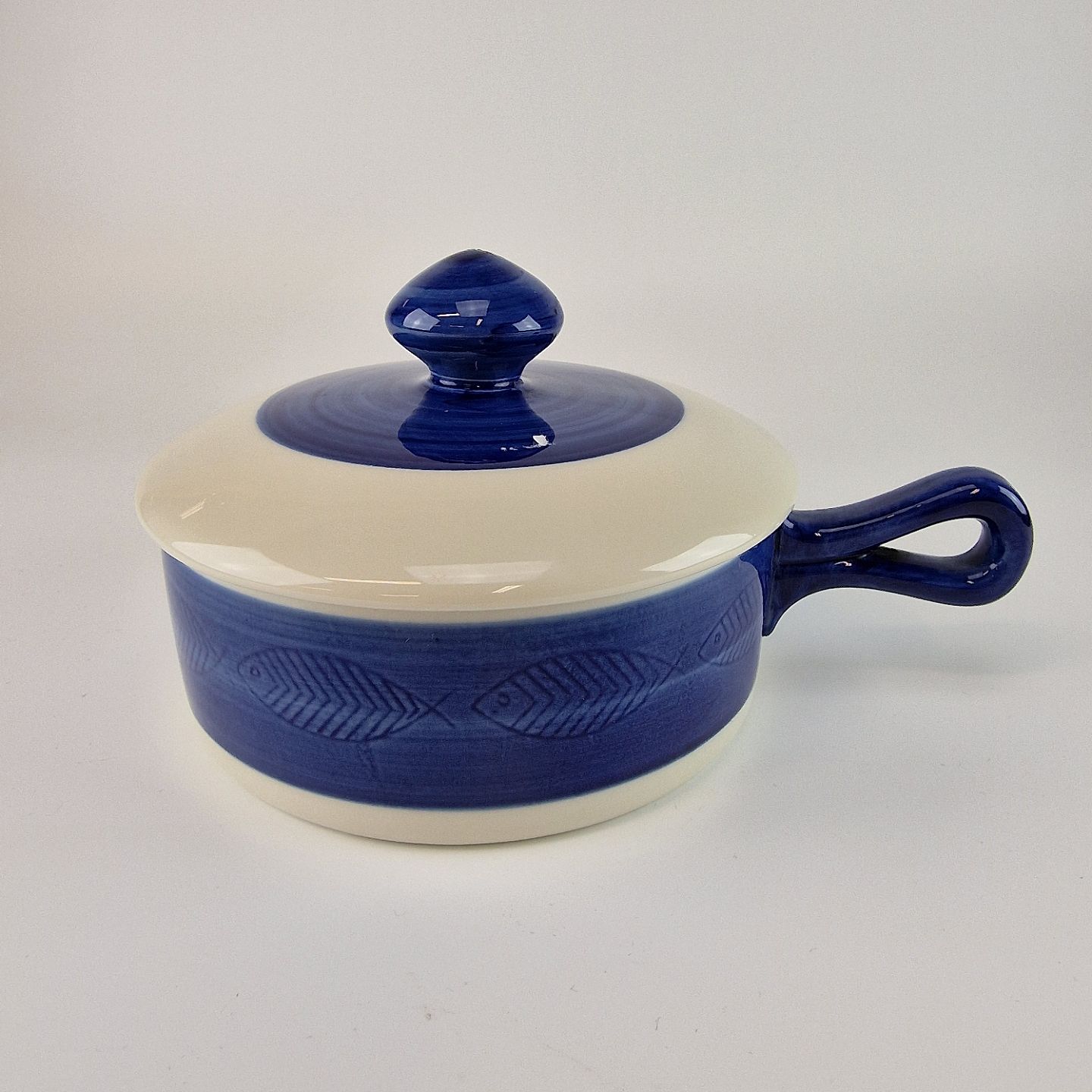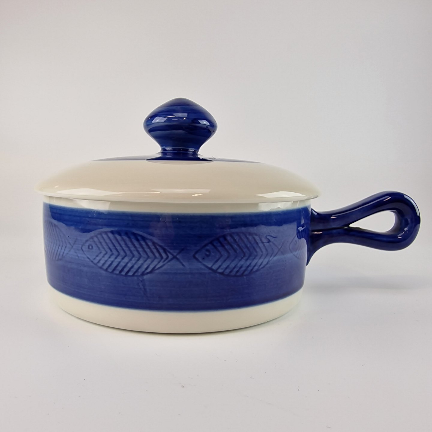 Skål med låg og hank fra stellet Blå Koka. No 62