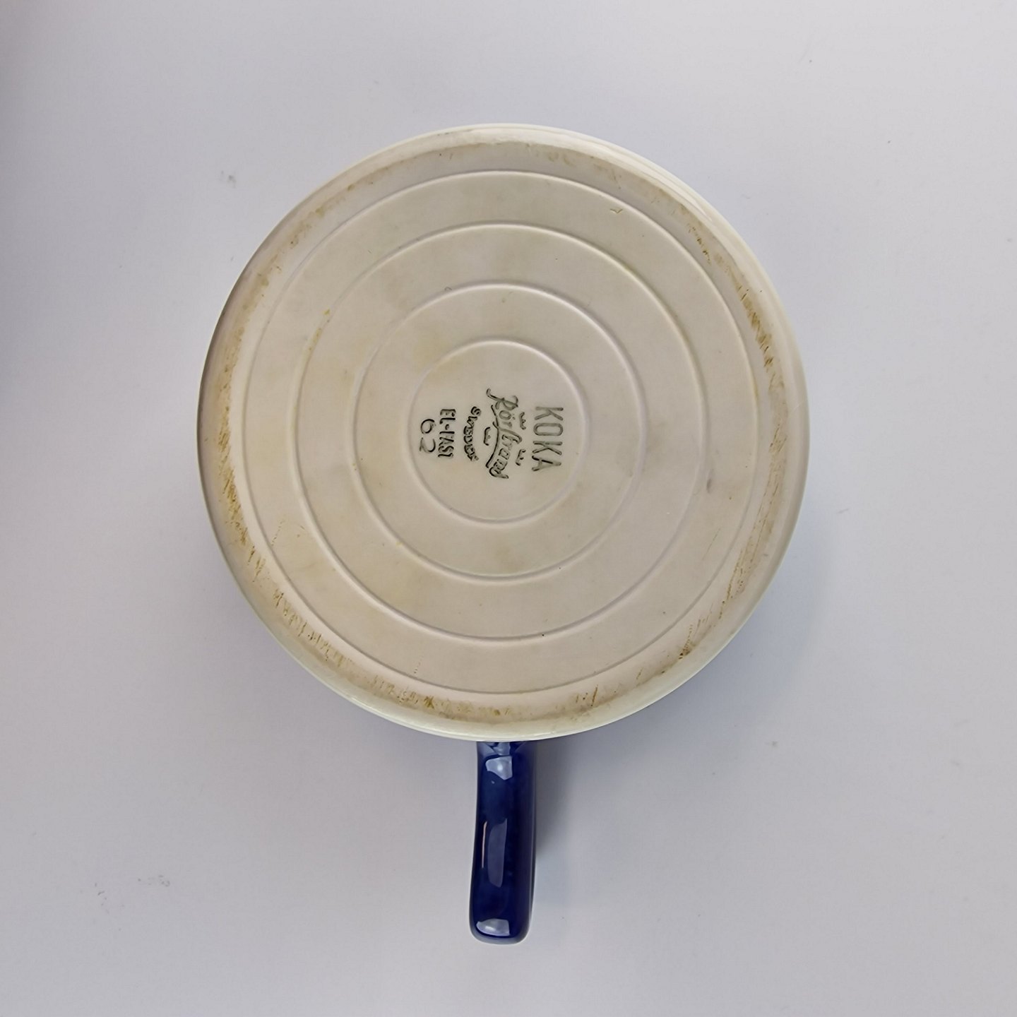 Blå Koka er af hvidt glaseret porcelæn med et bånd af mørk blå