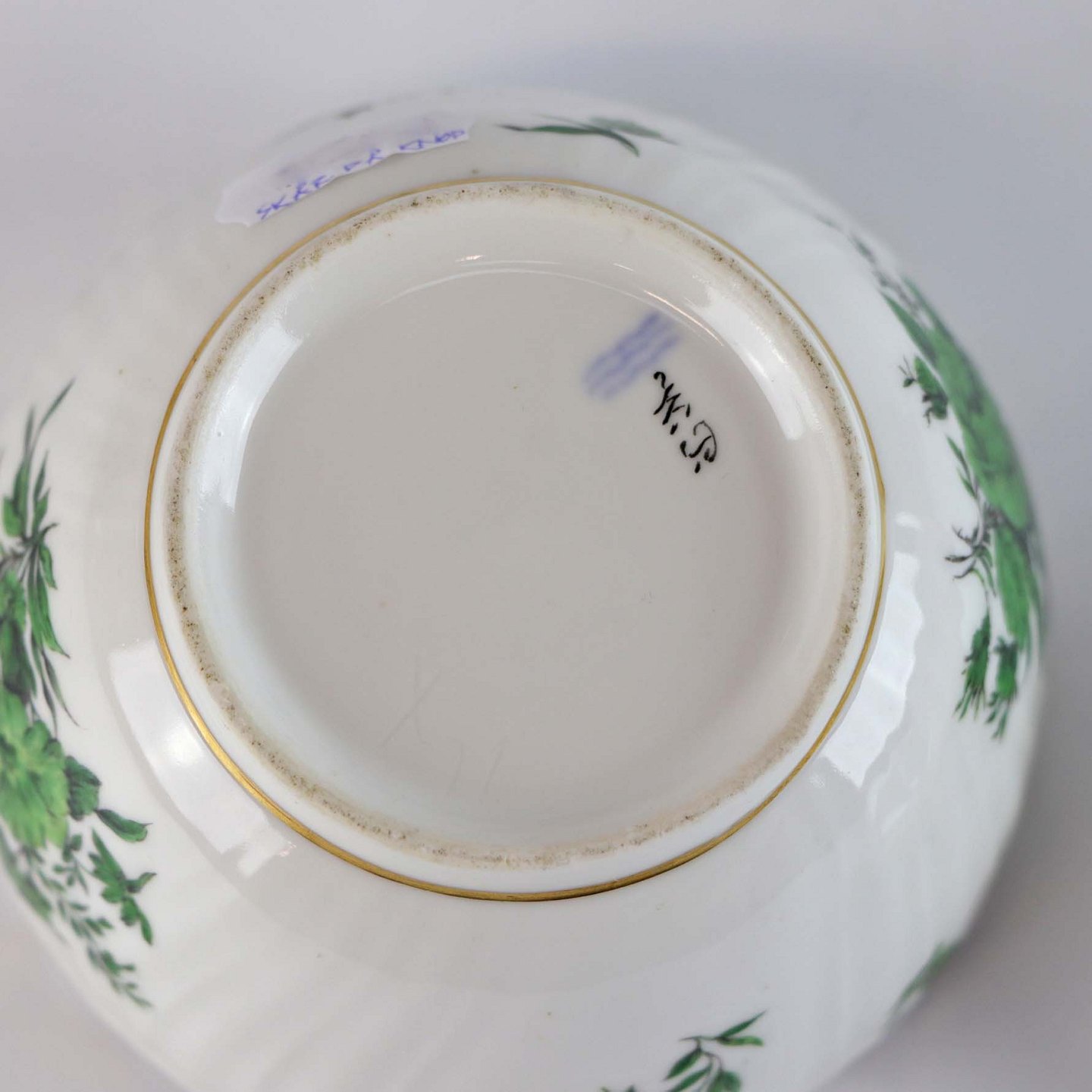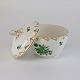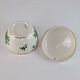Lågkrukke i svejfet hvidt porcelæn med motiv af grønne blomster og blade