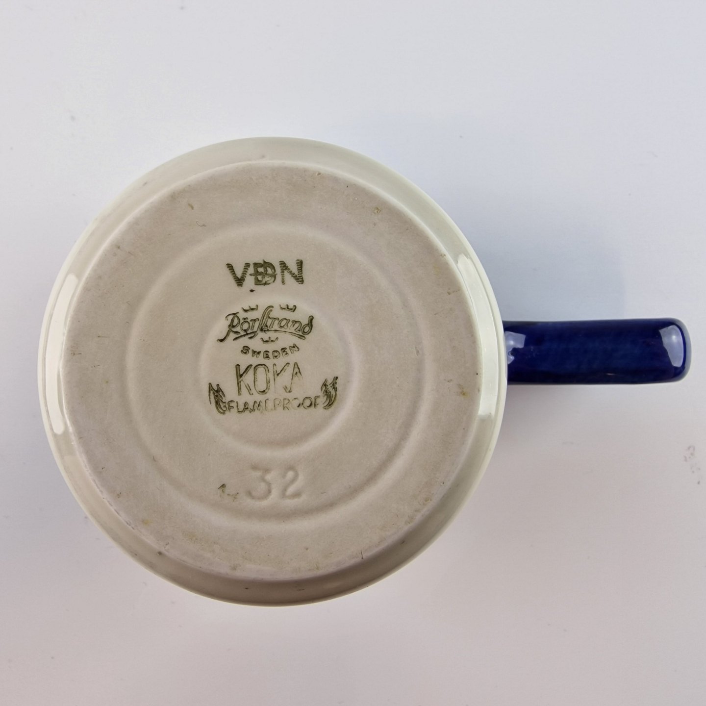 Blå Koka er af hvidt glaseret porcelæn med et bånd af mørk blå
