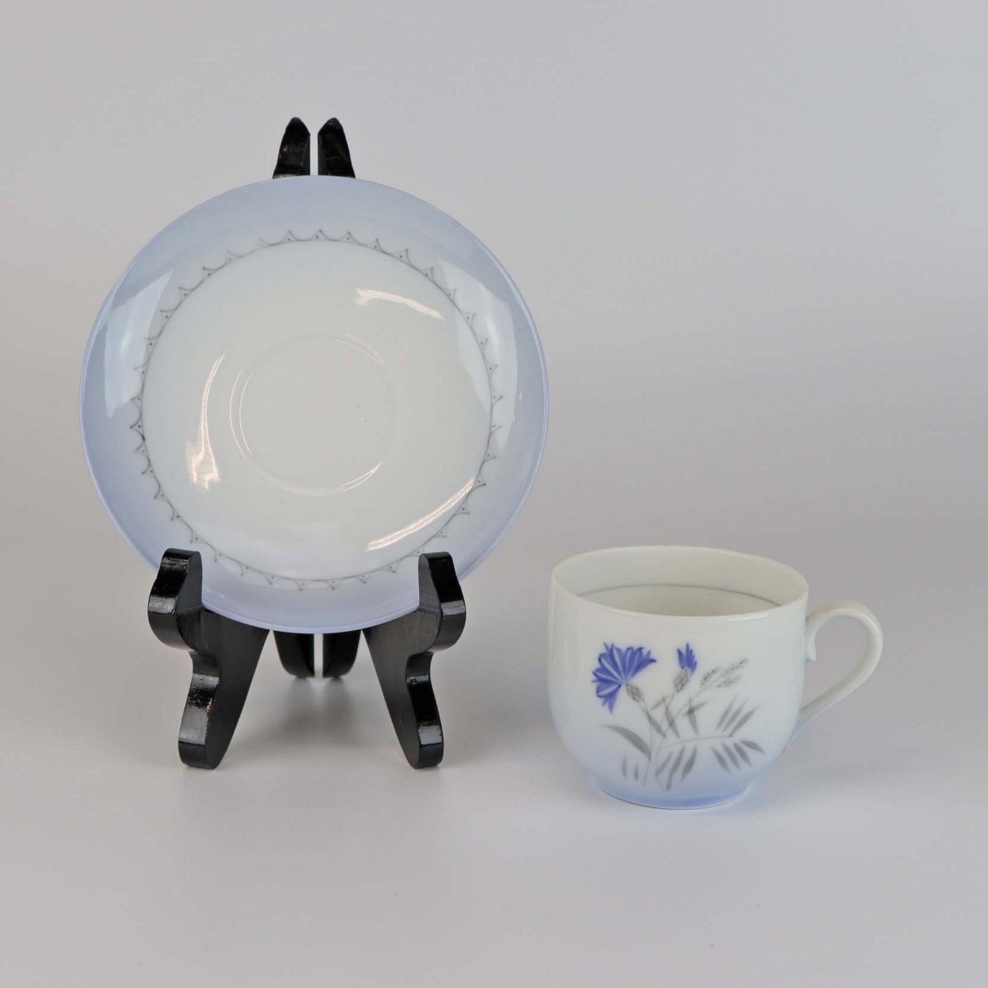 Demeter er af hvidt porcelæn med graduering af blå i kanten og med motiv af kornblomst