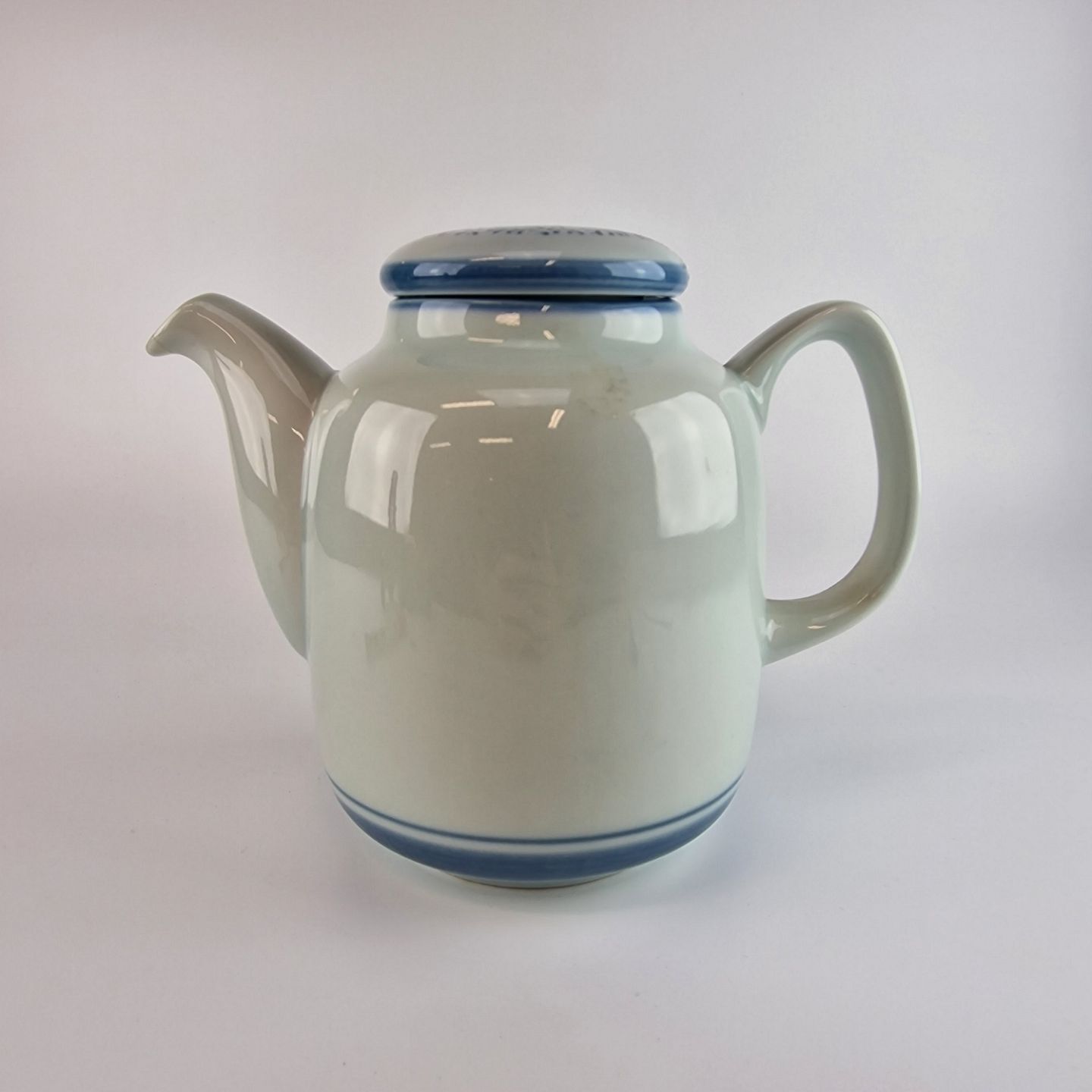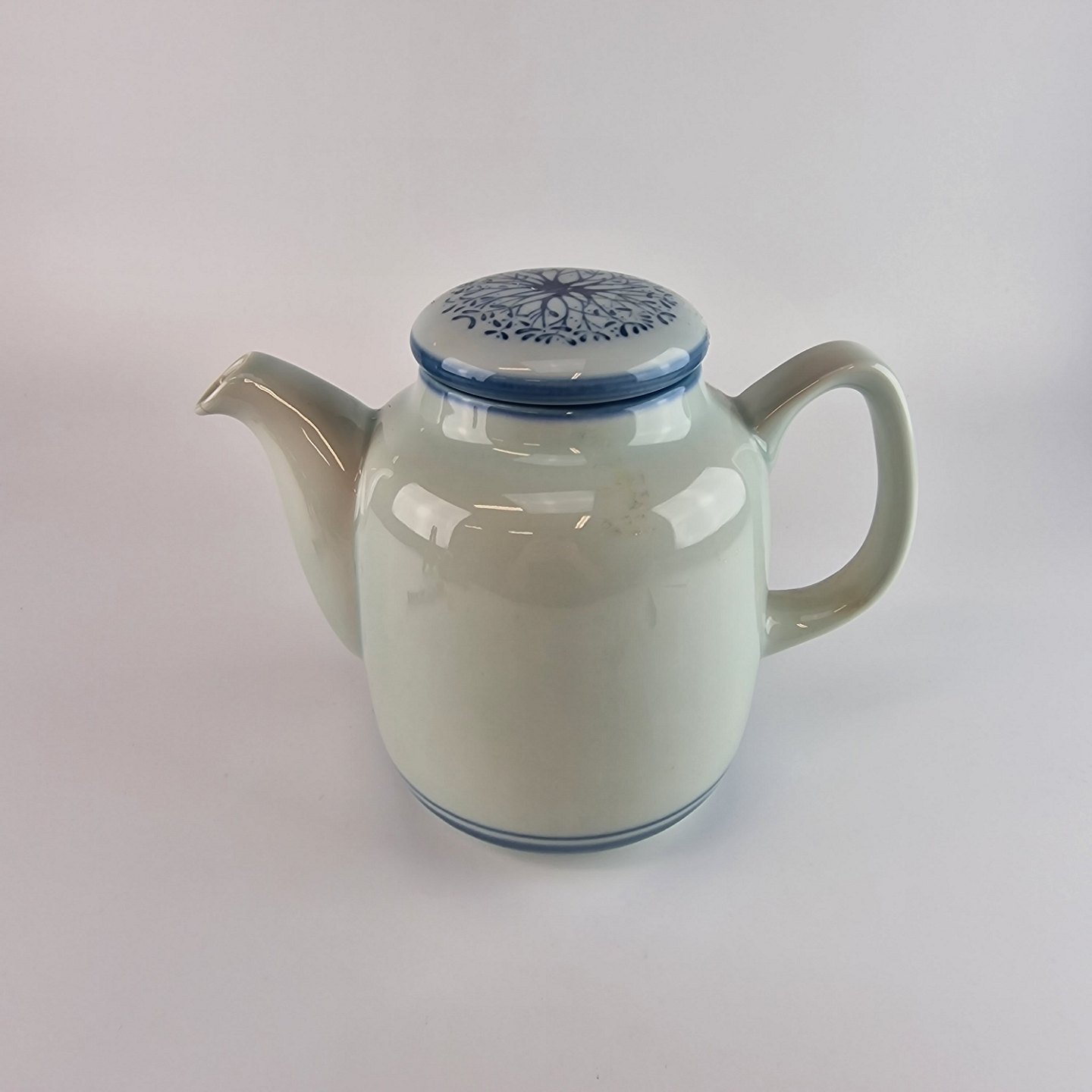 Stellets runde former er dækket med en silkeblød glasur og håndmalet med er lys almueblå farve lagt under glasuren. Stellet er ovnfast
