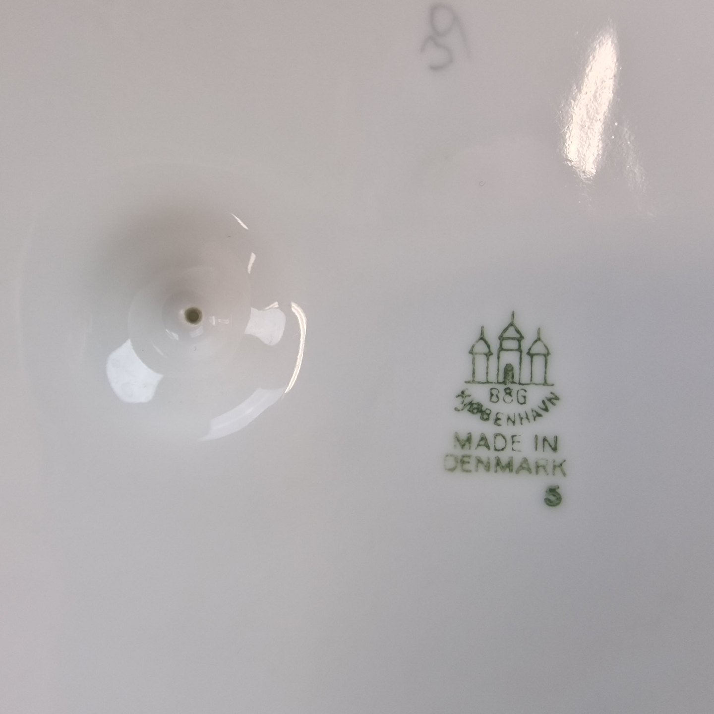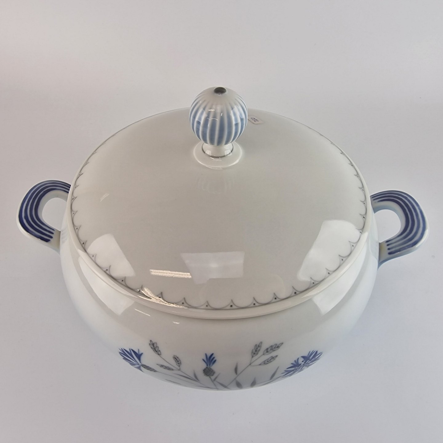 Demeter er af hvidt porcelæn med graduering af blå i kanten og med motiv af kornblomst
