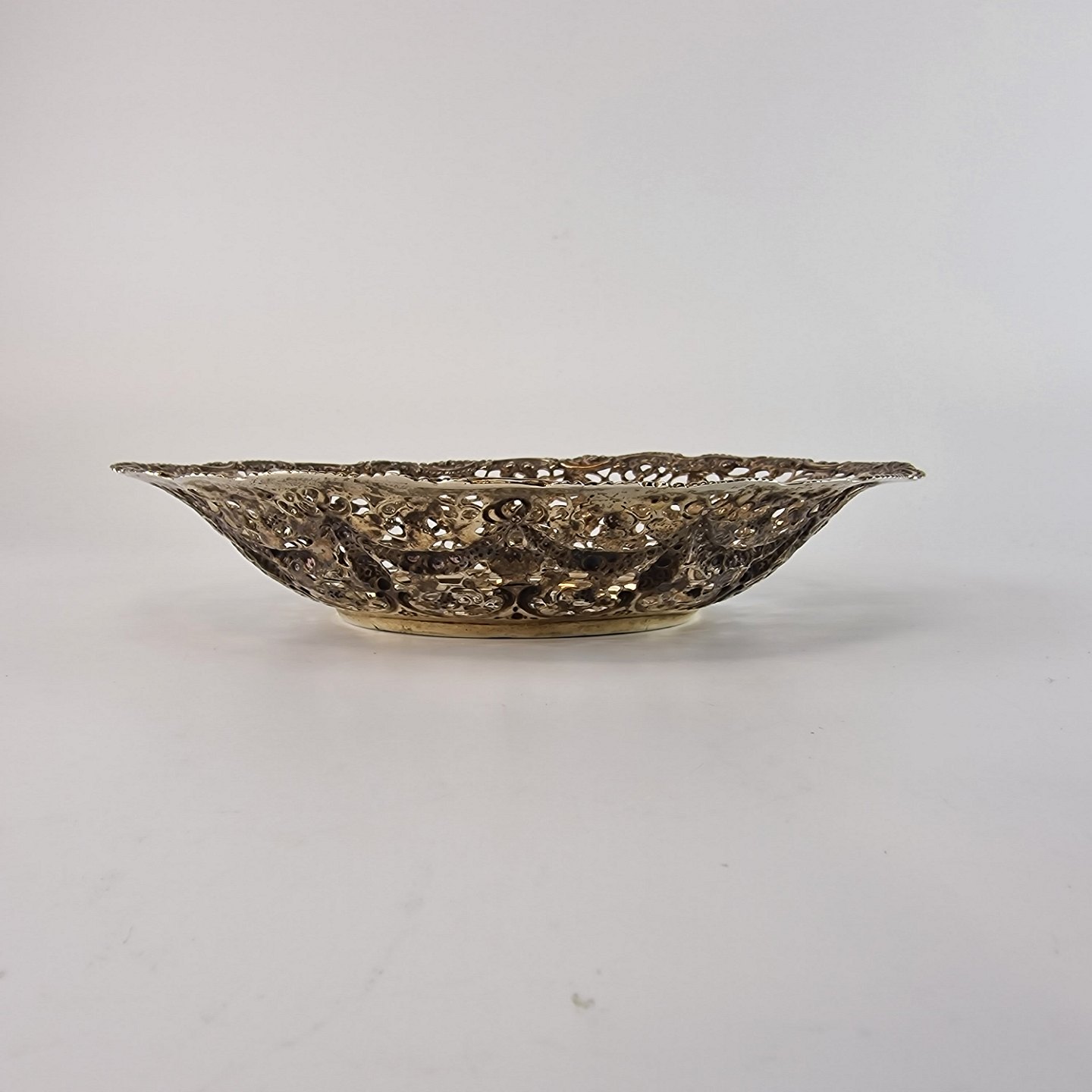 Sølvfad med motiv af blomsterranker og børn der leger på en eng
