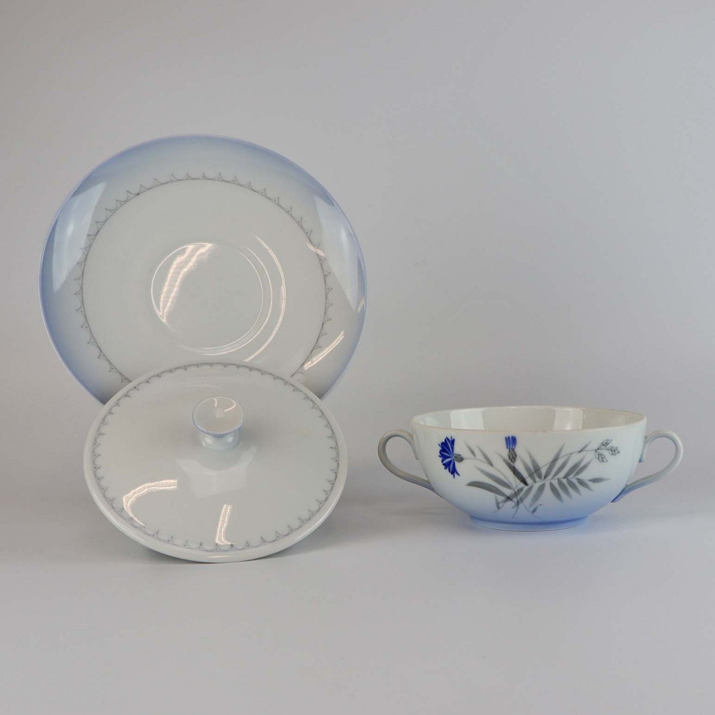 Bouillonkop med låg og underskål fra stellet Demeter Blå. No 12 B