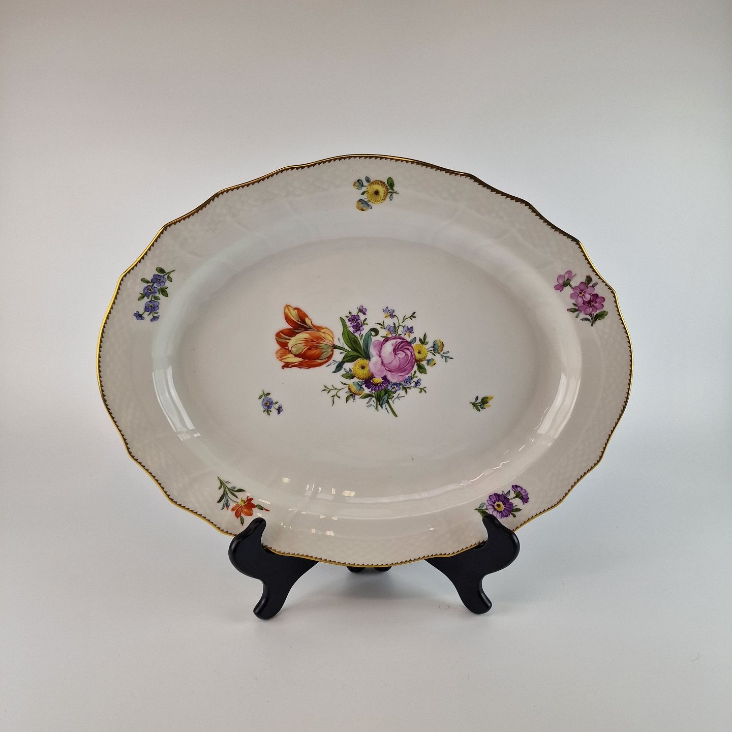 Ovalt fad fra det håndmalede stel Saksisk Blomst. No 1221/1556