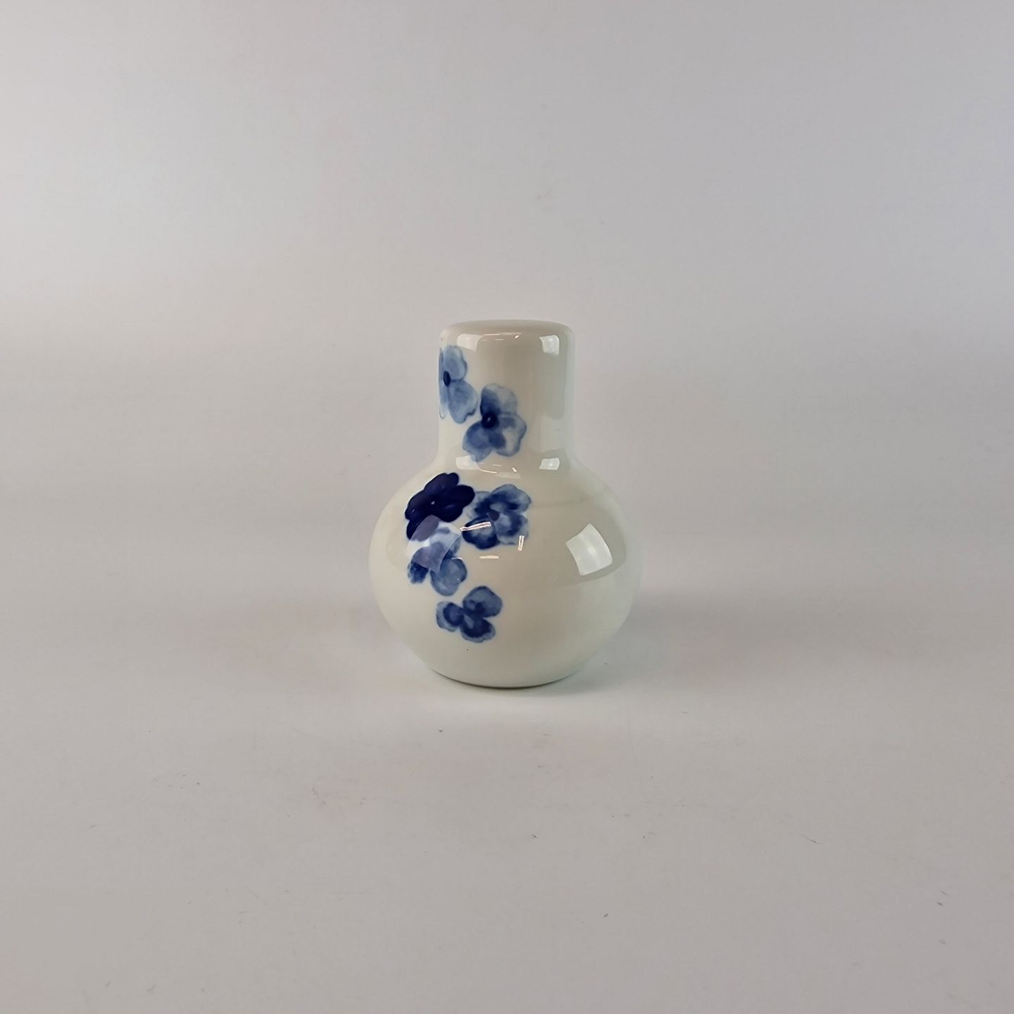 Troja er af kraftigt hvidt porcelæn med mønster af blå blomster
