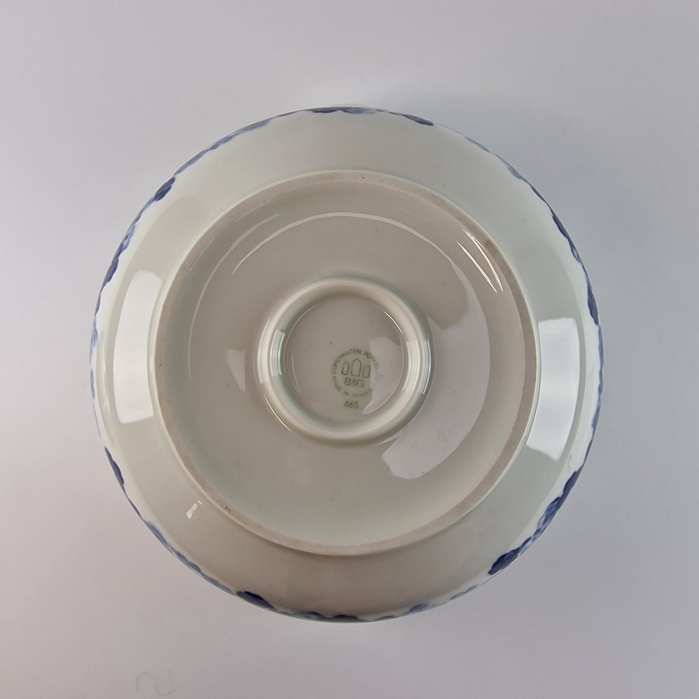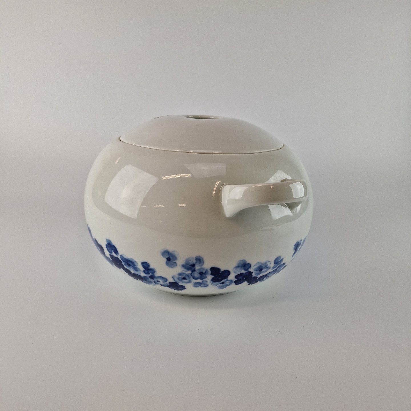Troja er af kraftigt hvidt porcelæn med mønster af blå blomster