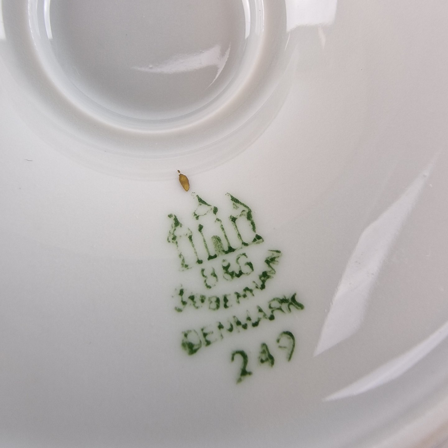 Roselil er kantet hvidt porcelæn med bred guldkant og er dekoreret med roser og blade