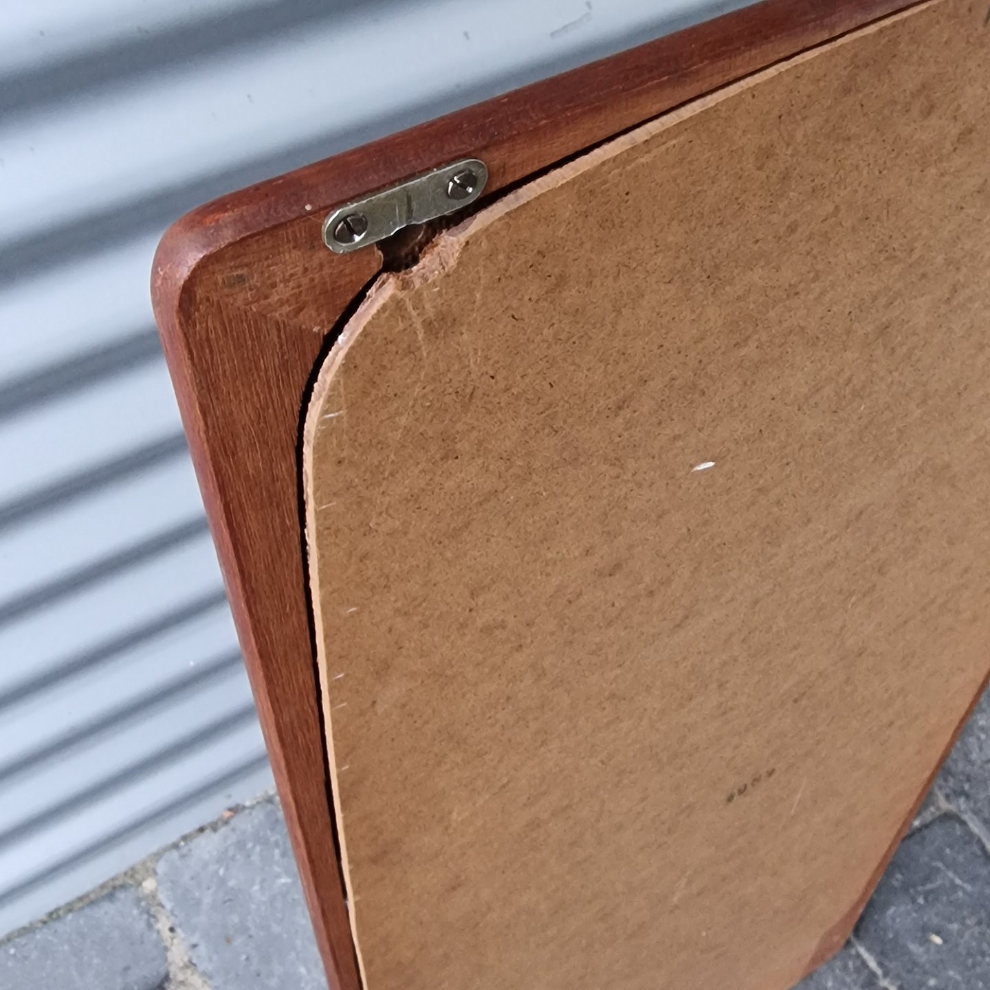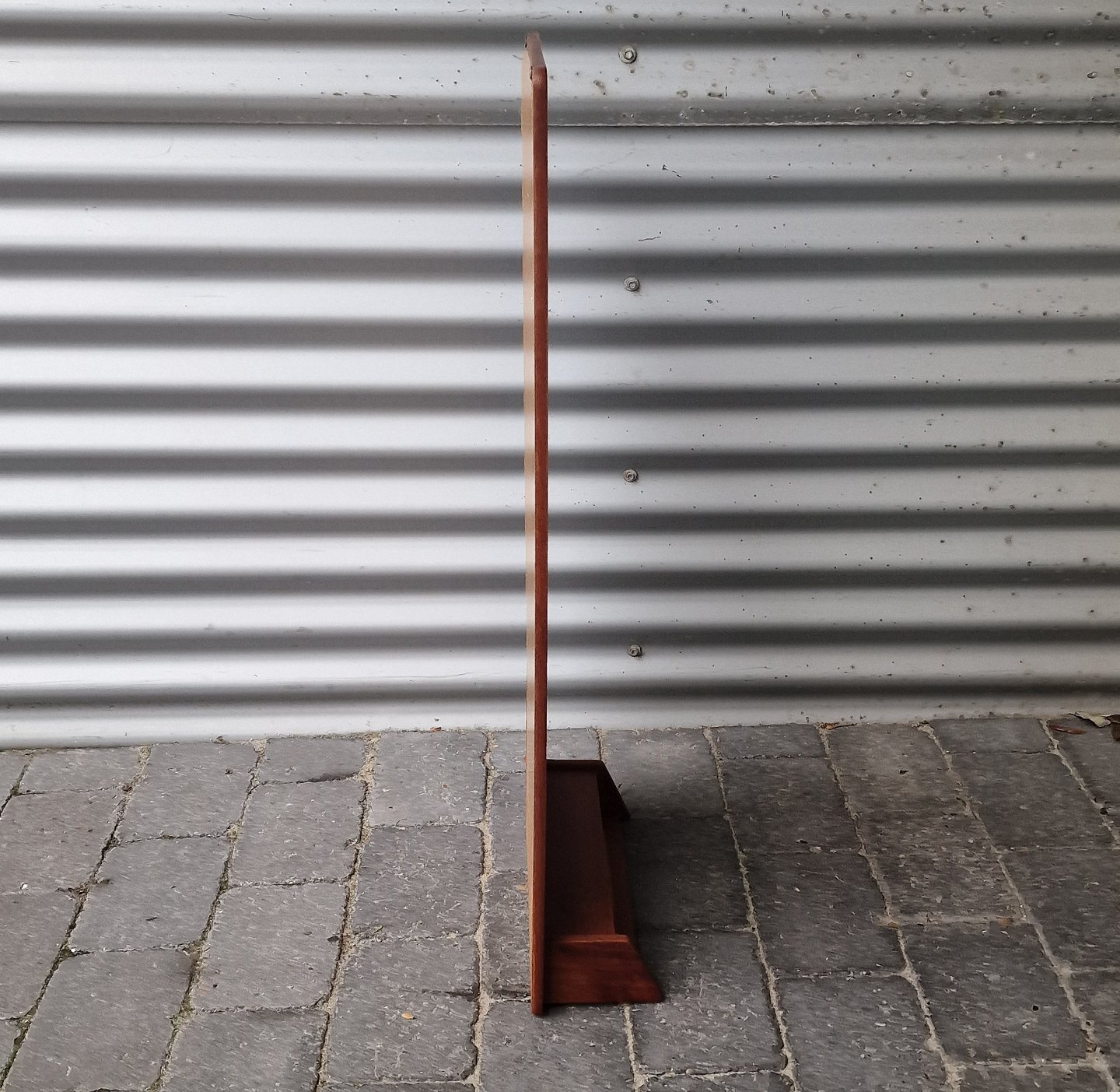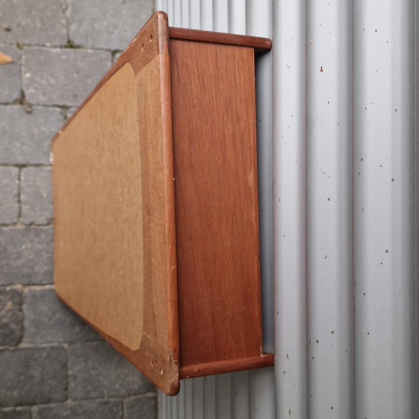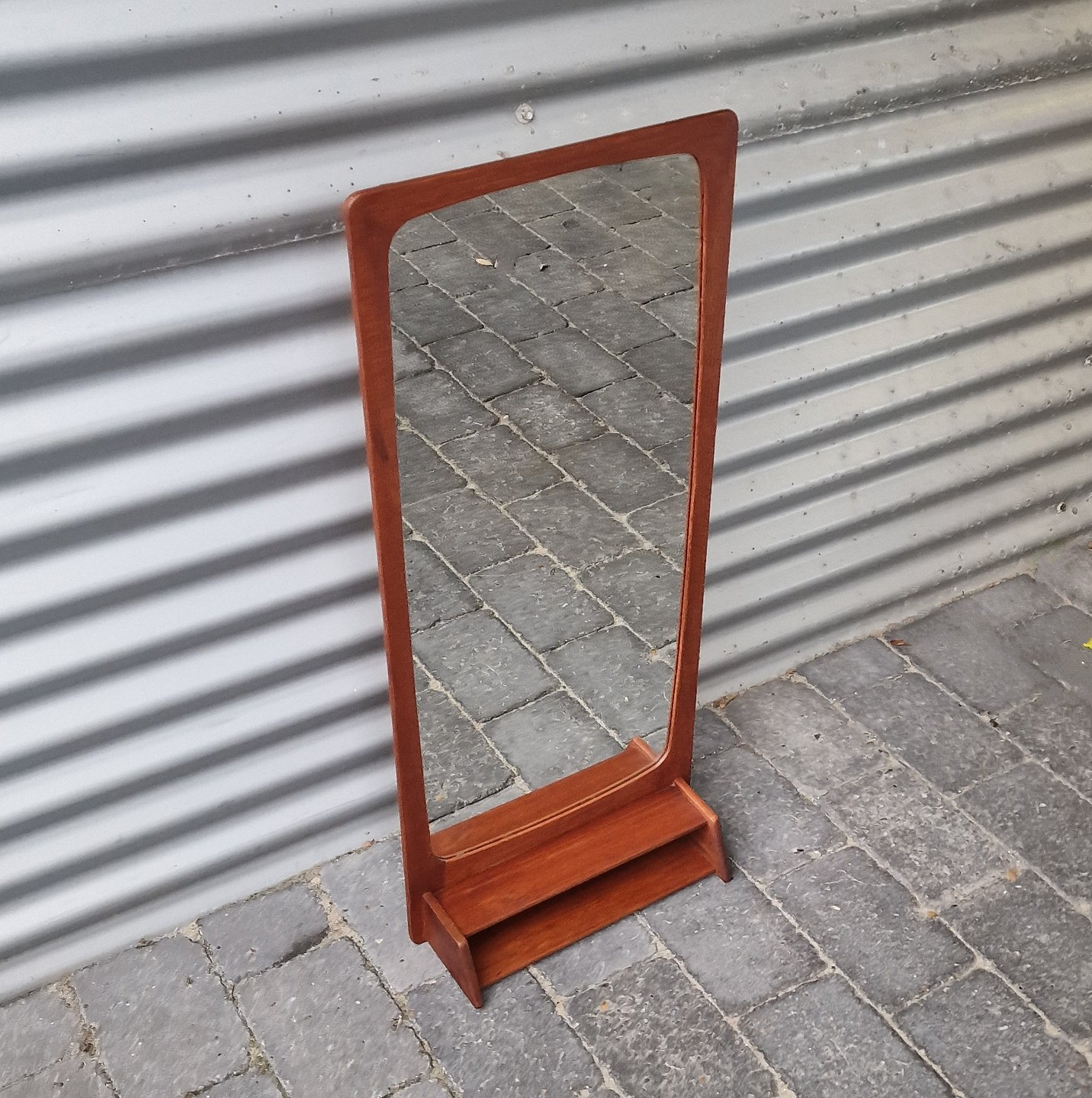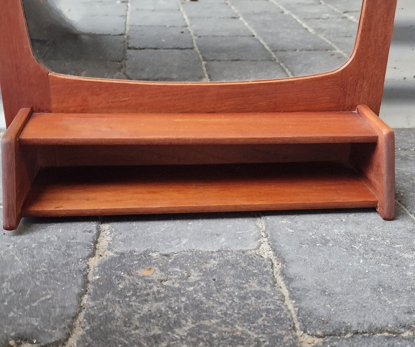 Smalt entrespejl med ramme og hylde i teaktræ i ukendt design
