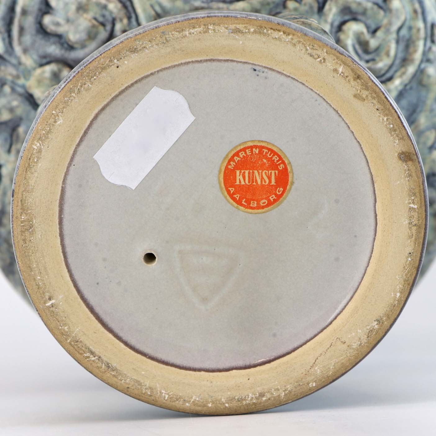 Kopi af Åkirke døbefont i keramik, med scener fra Kristi liv afbilledet på ydersiden.