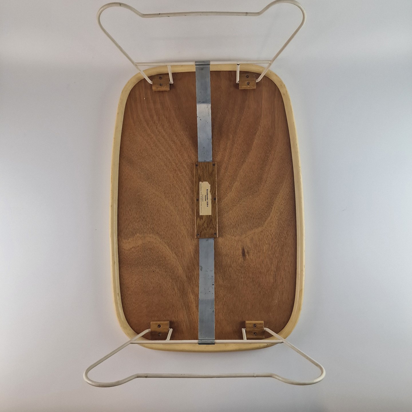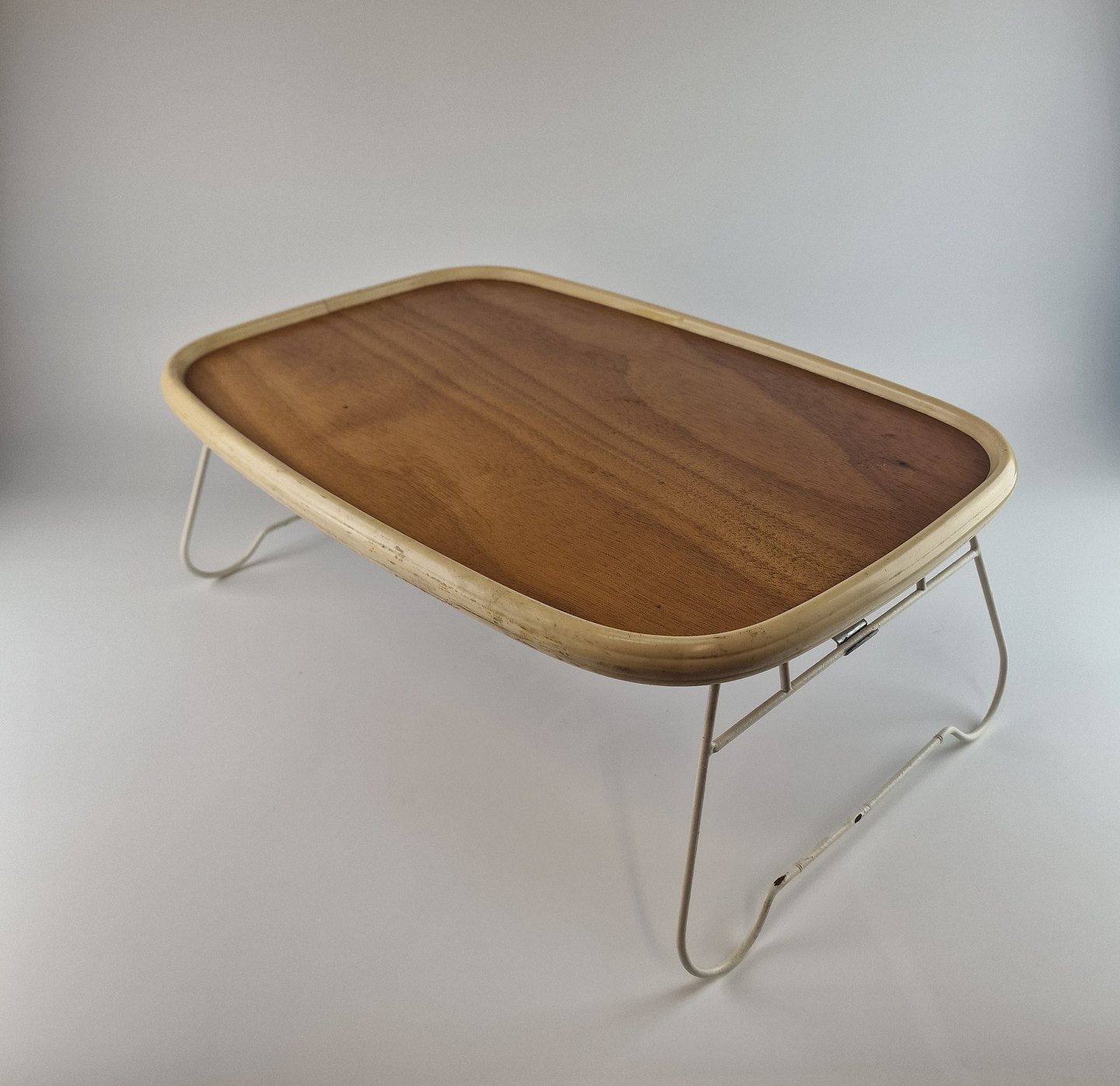 Brickbordet SEBA fra Sverige. Plade af teaktræ i ramme af plast og med ben af stål.