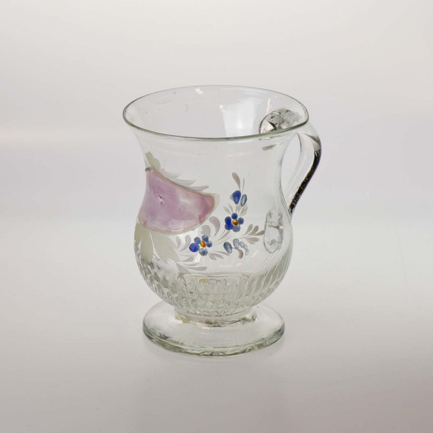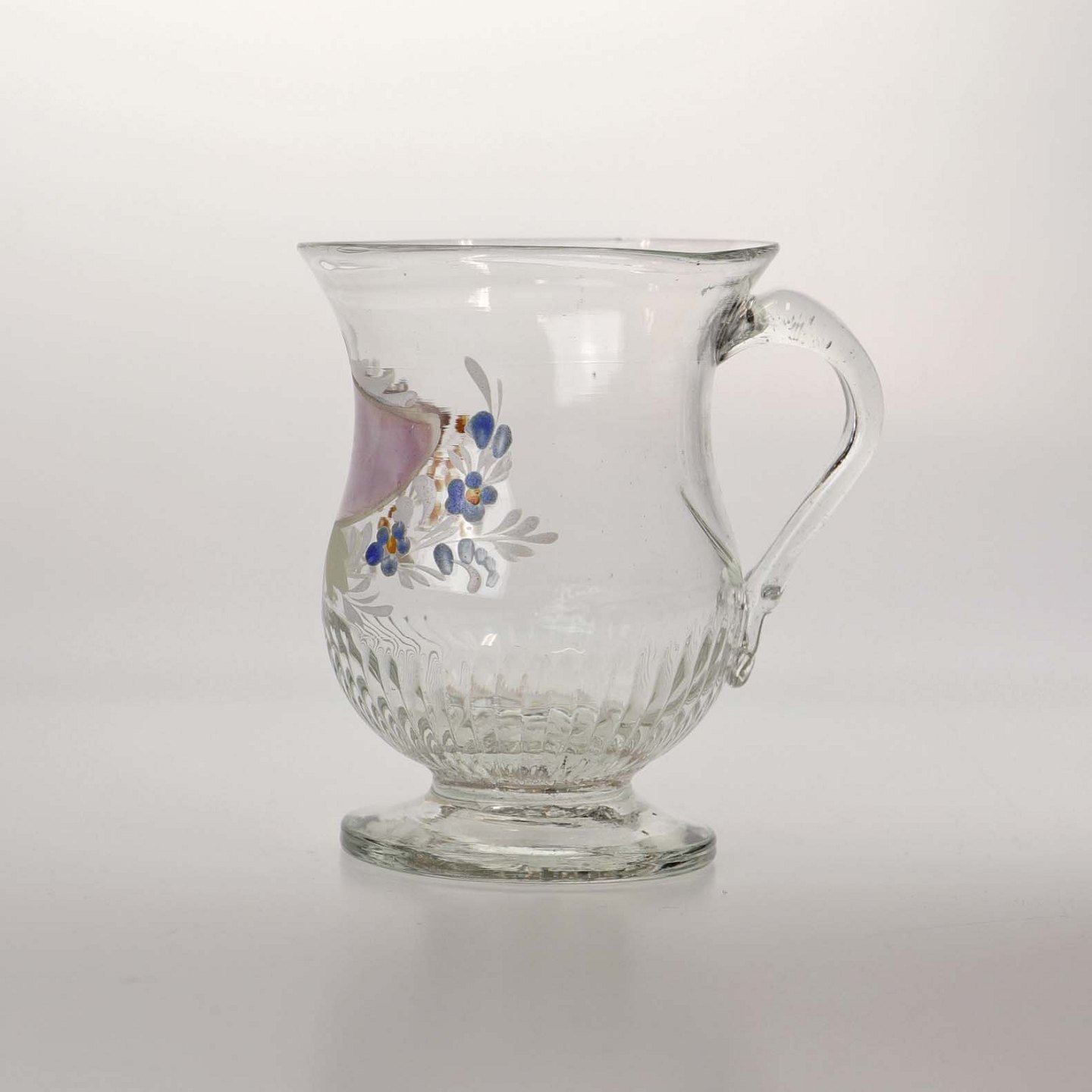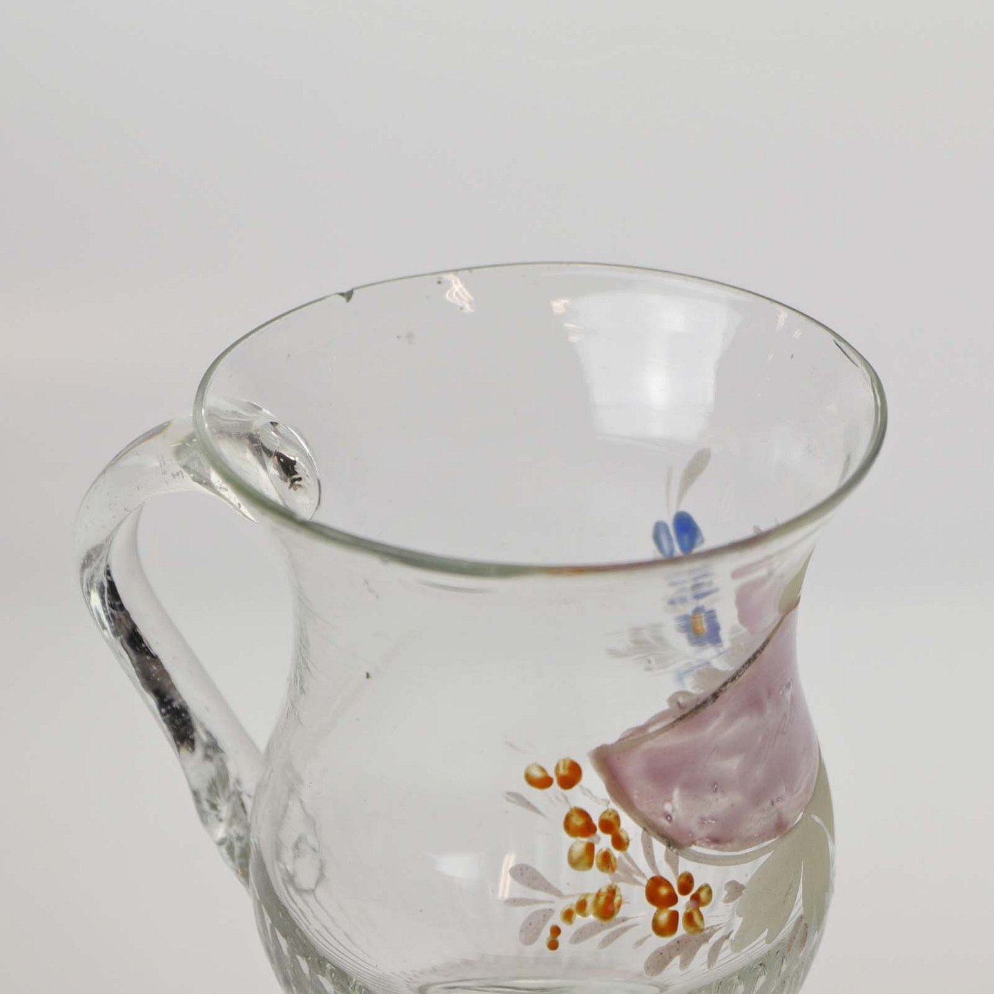 Glaskrus med emalje malet blomsterdekorationer og teksten Friendship