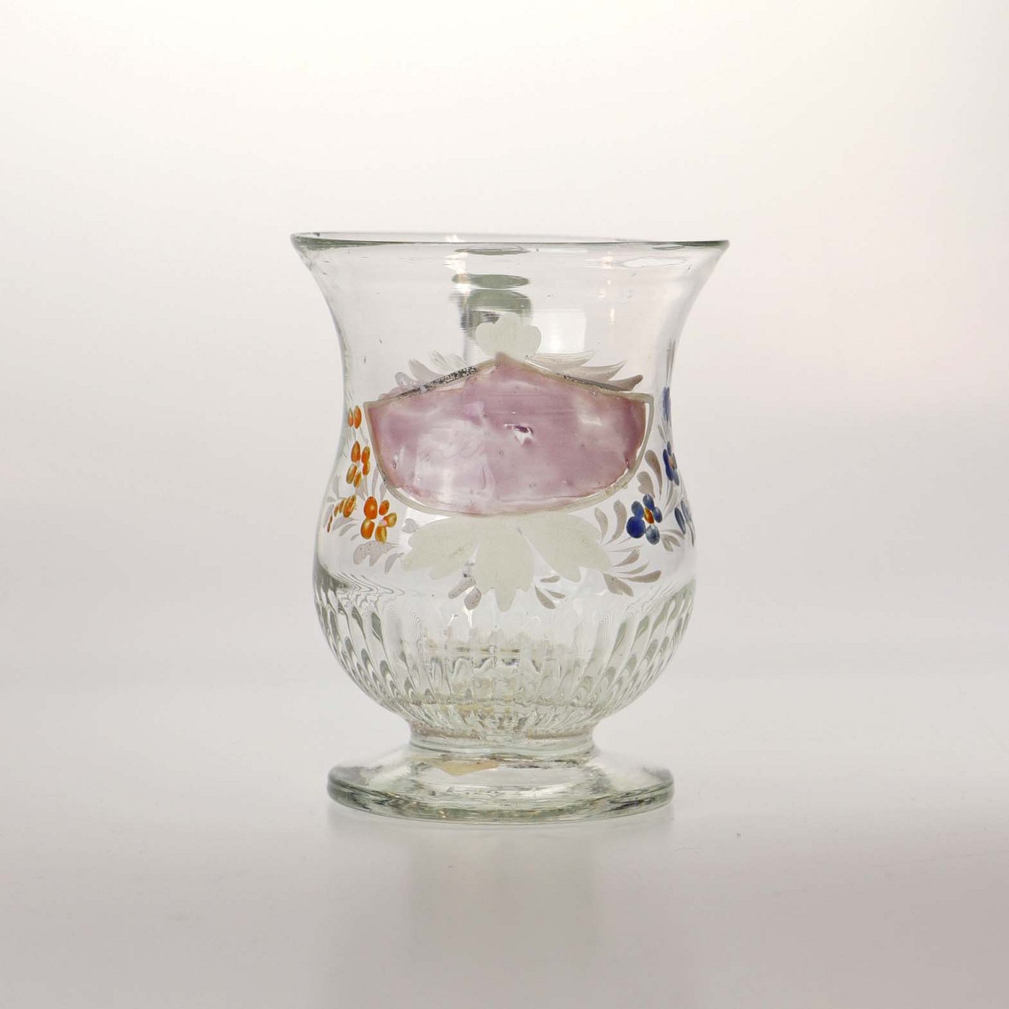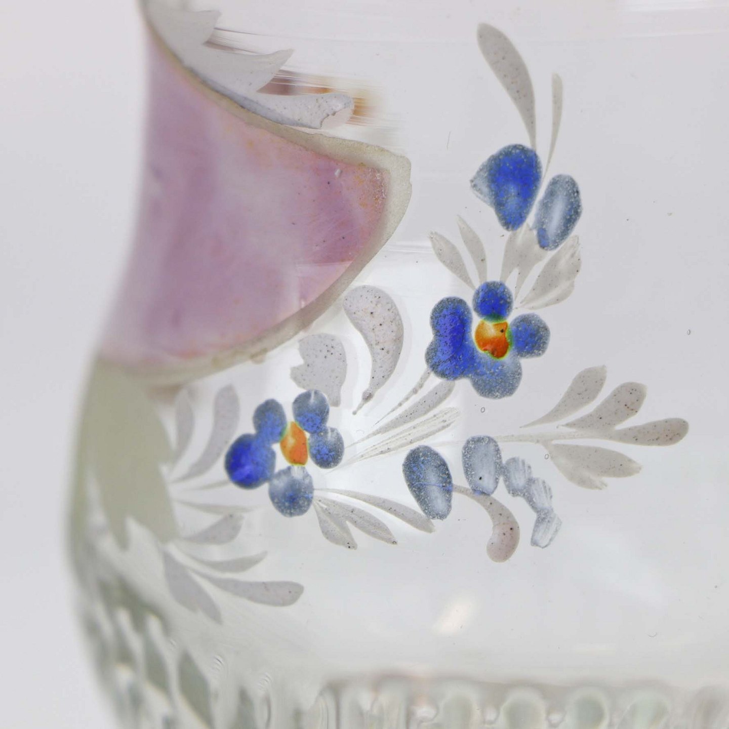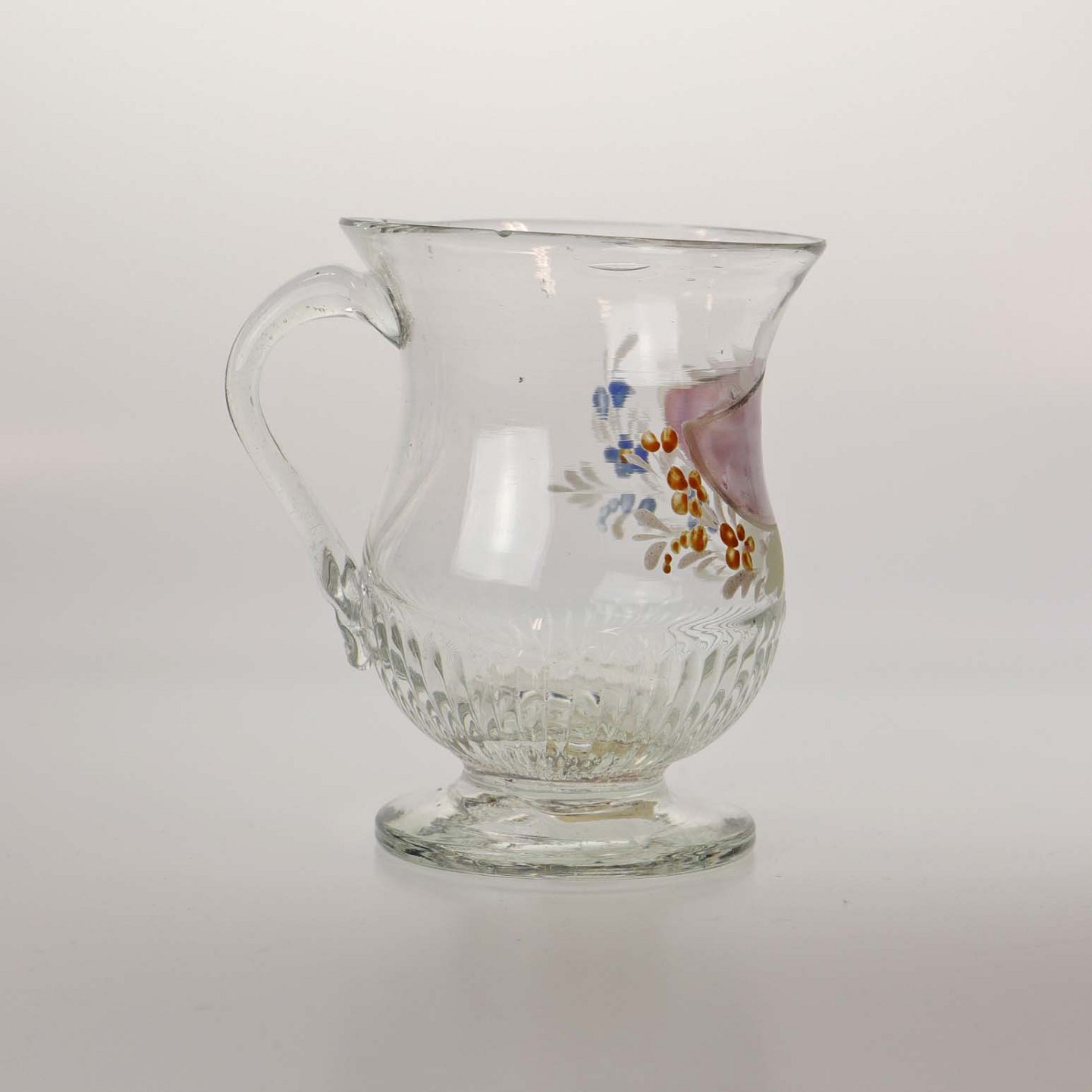 Glaskrus med emalje malet blomsterdekorationer og teksten Friendship