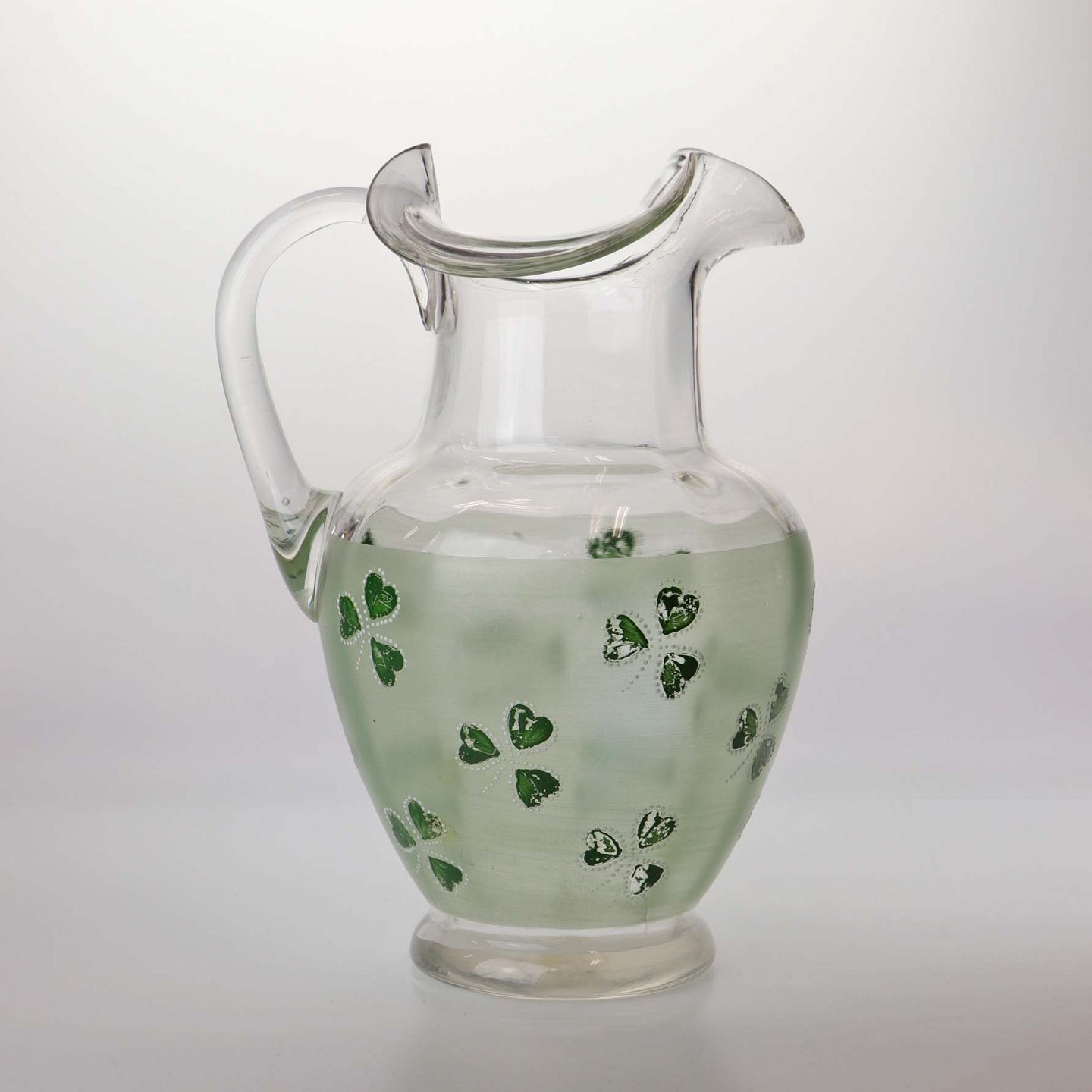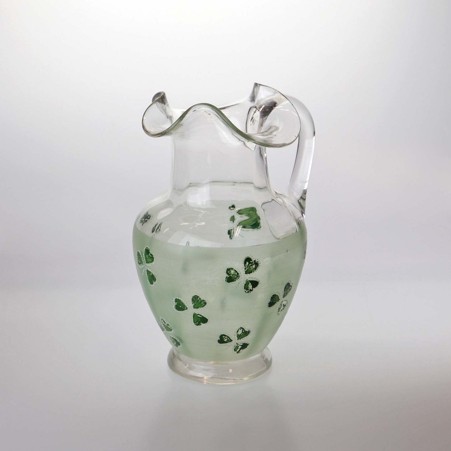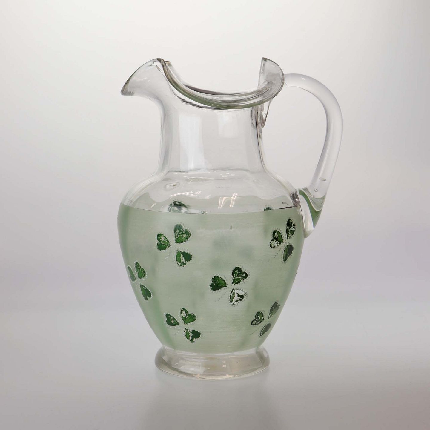 Kande af glas med emalje malet trekløver