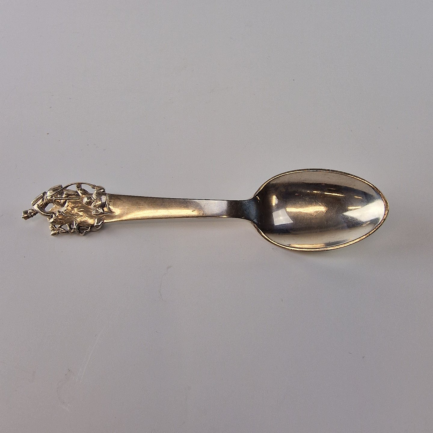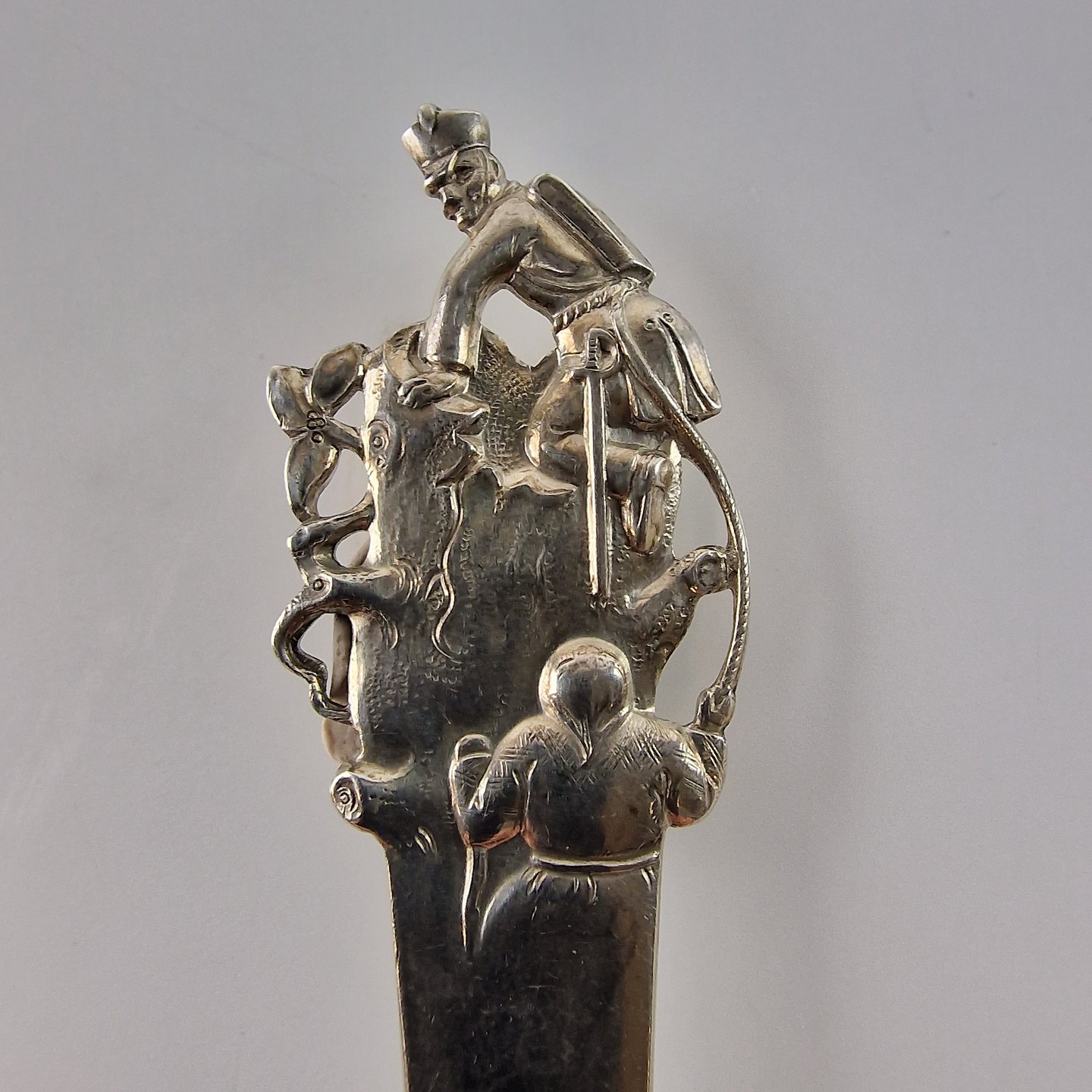 H.C. Andersen barneske i sølv. Med motiv fra eventyret Fyrtøjet. År 1950