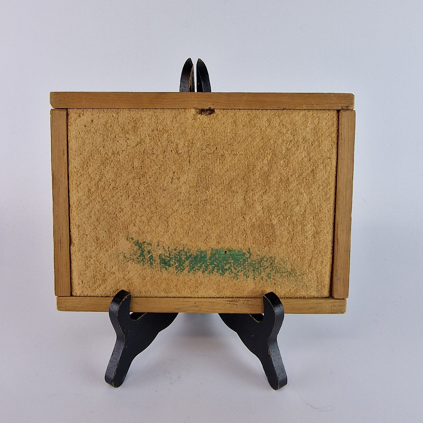 Fremstår med lettere brugsspor på trærammen og mindre skade på pladen i toppen af maleriet