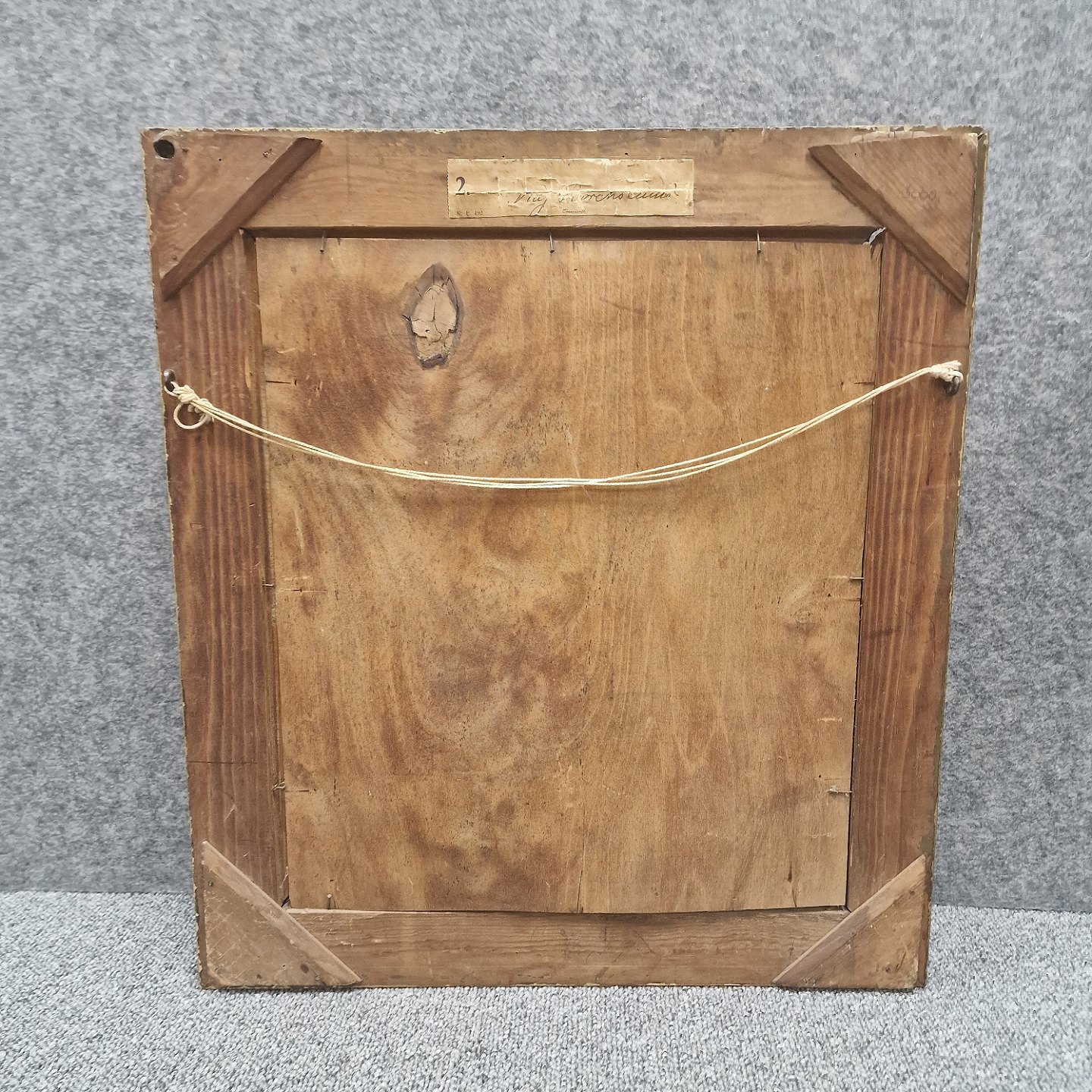 Oliemaleri på plade i gylden træramme. Portrætmaleri af yngre person med runde briller.
