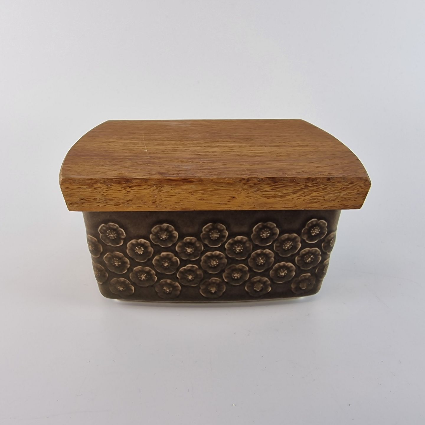 Smørskål i stentøj med trælåg fra stellet Umbra