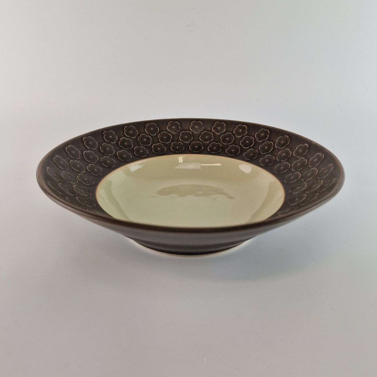 Stel i brun stentøj med blomster motiver