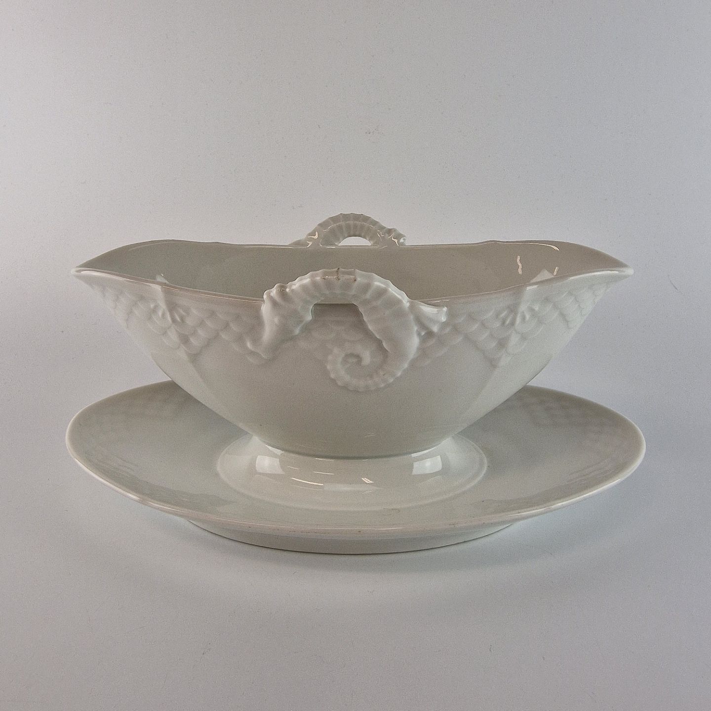 Elegance er hvidt glaseret porcelæn med et skæl lignende mønster