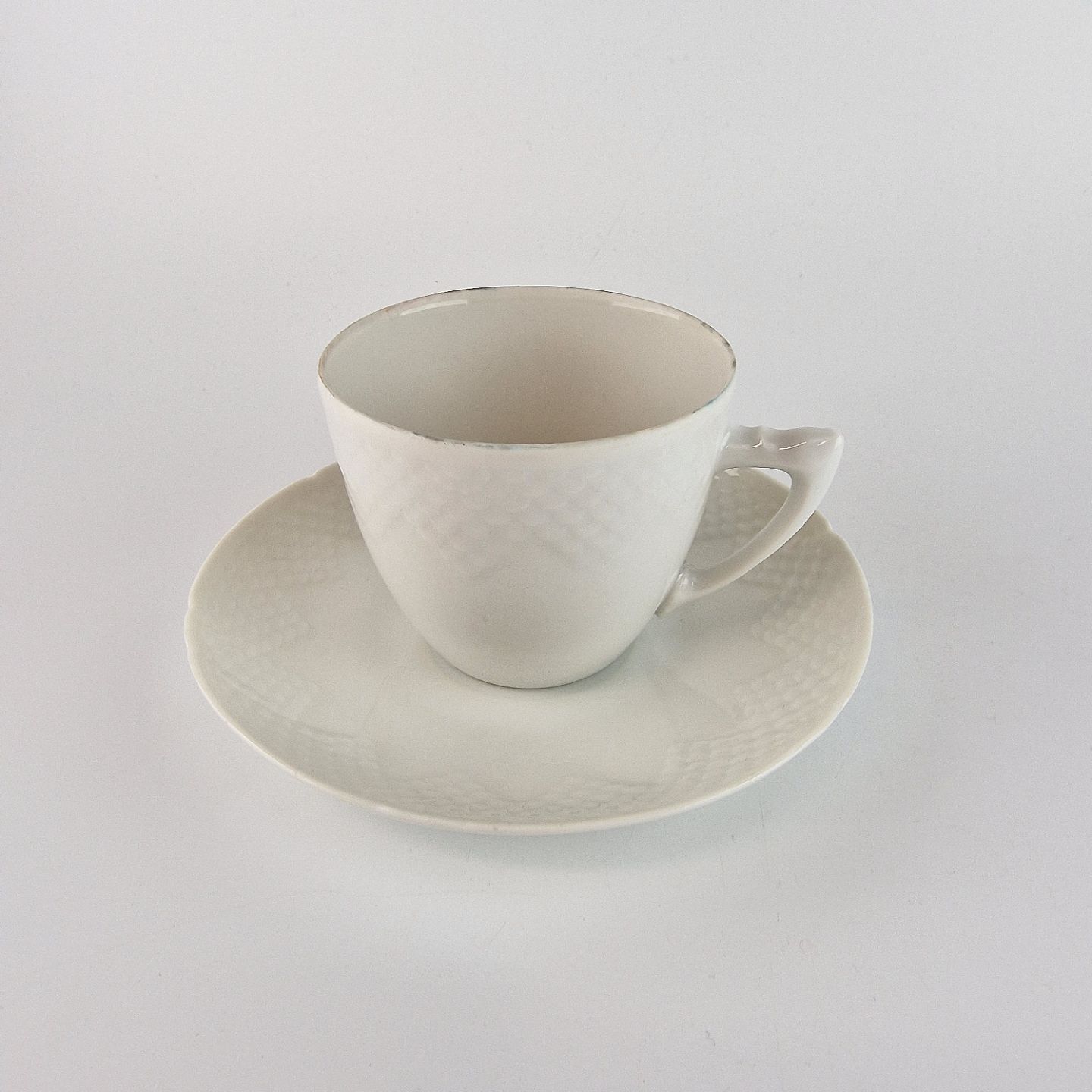 Elegance er hvidglaseret porcelæn med et skæl mønster