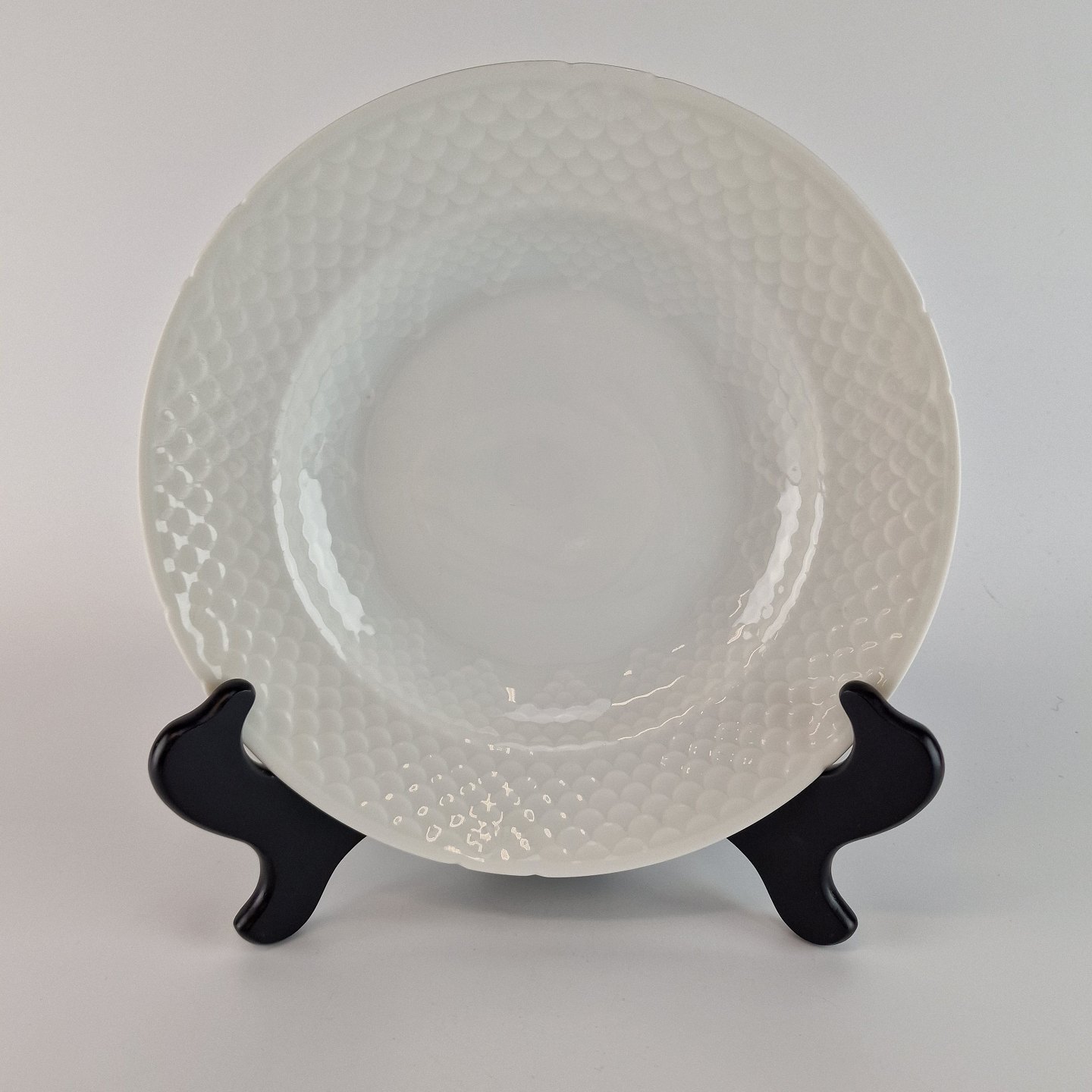 Elegance er hvidt glaseret porcelæn med et skæl lignende mønster