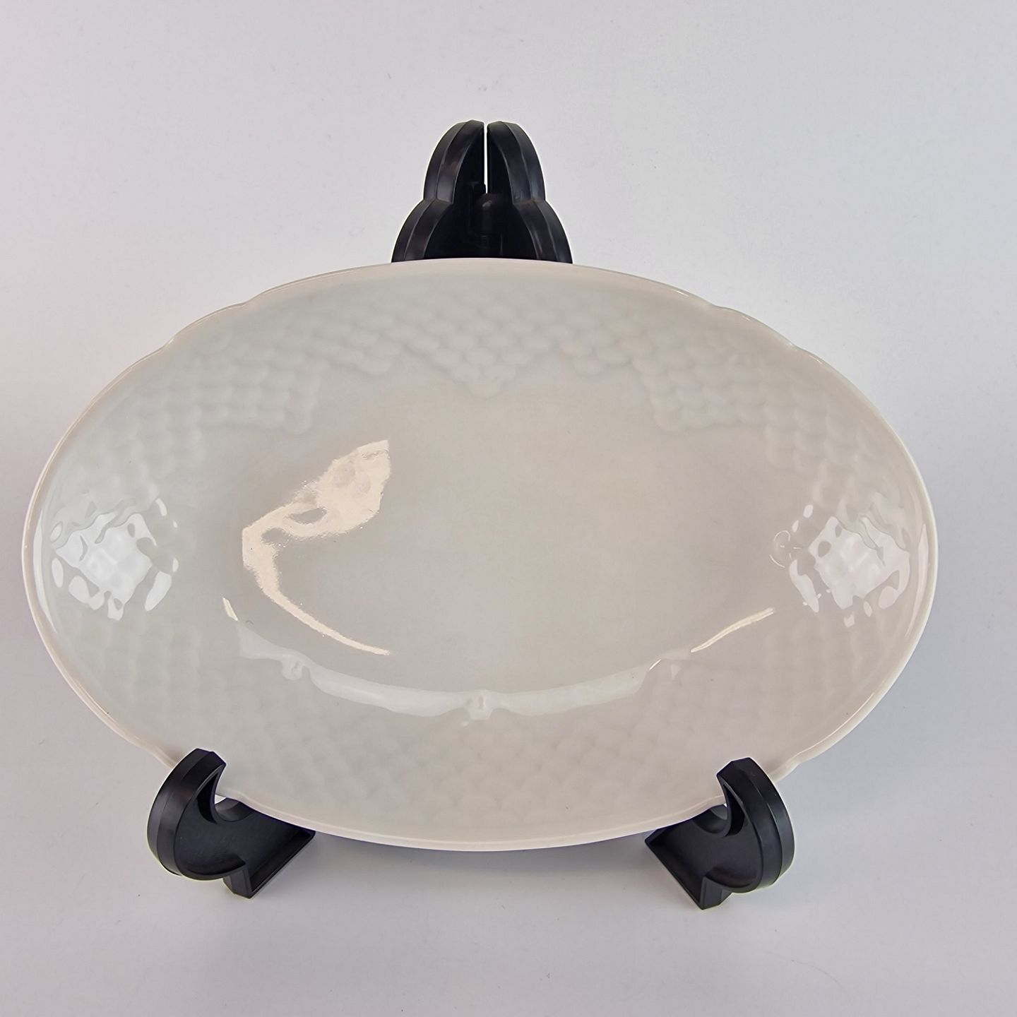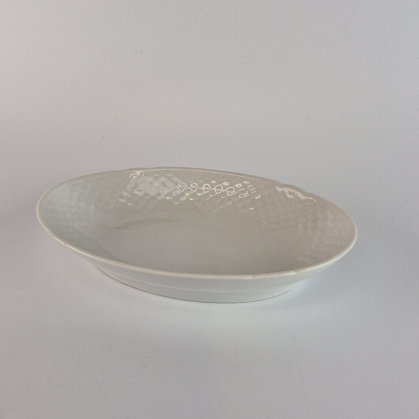 Elegance er hvidt glaseret porcelæn med et skæl lignende mønster