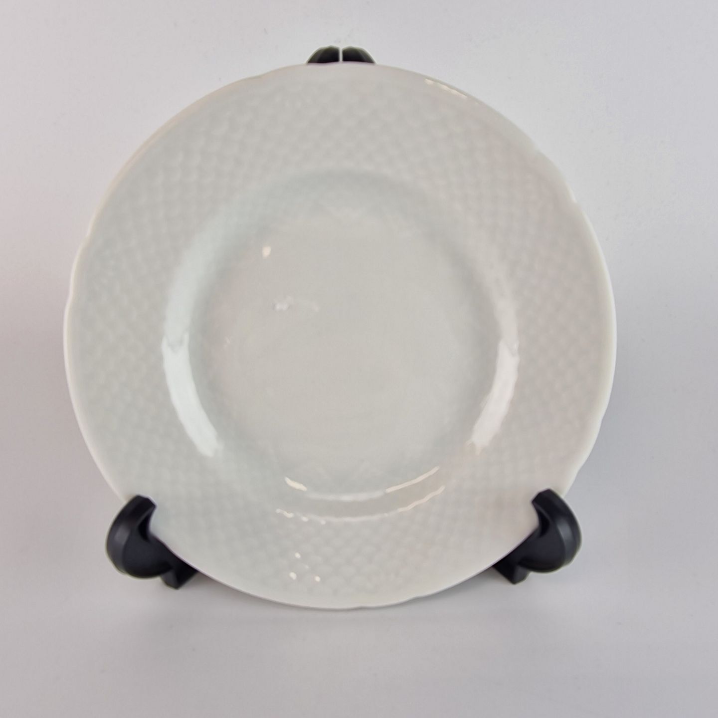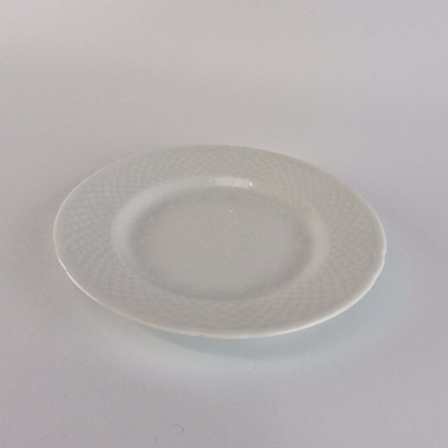 Elegance er hvidt glaseret porcelæn med et skæl lignende mønster
