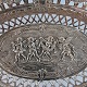 Ovalt fad dekoreret med engle med musikinstrumenter. Fadet er stemplet 830 sølv