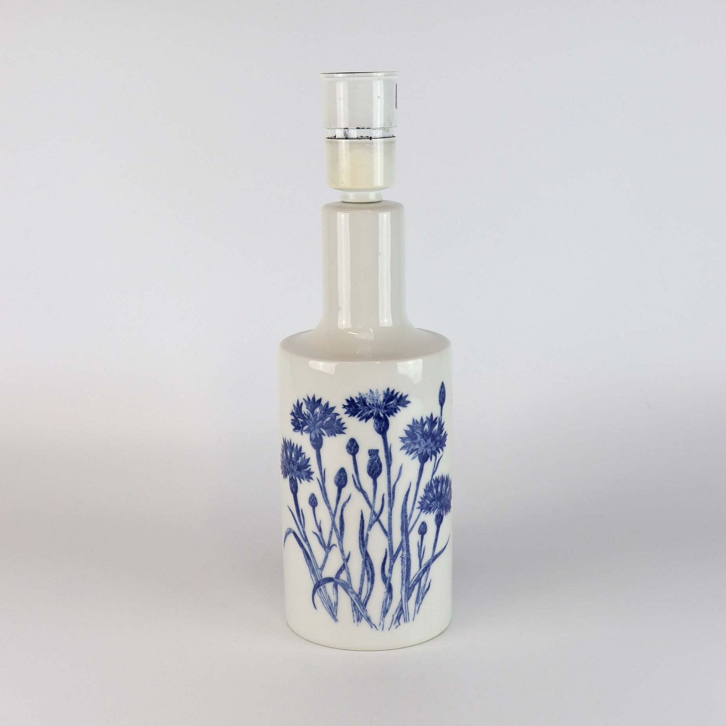 Bordlampe af porcelæn med motiv af blå kornblomster
