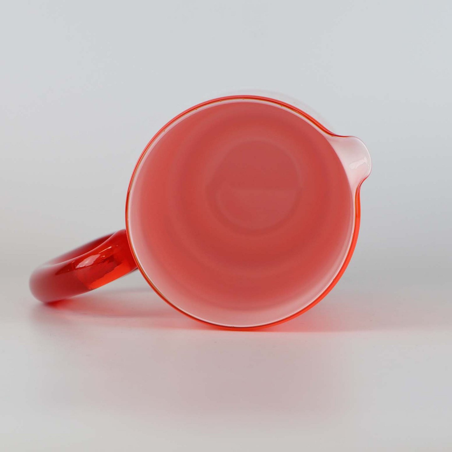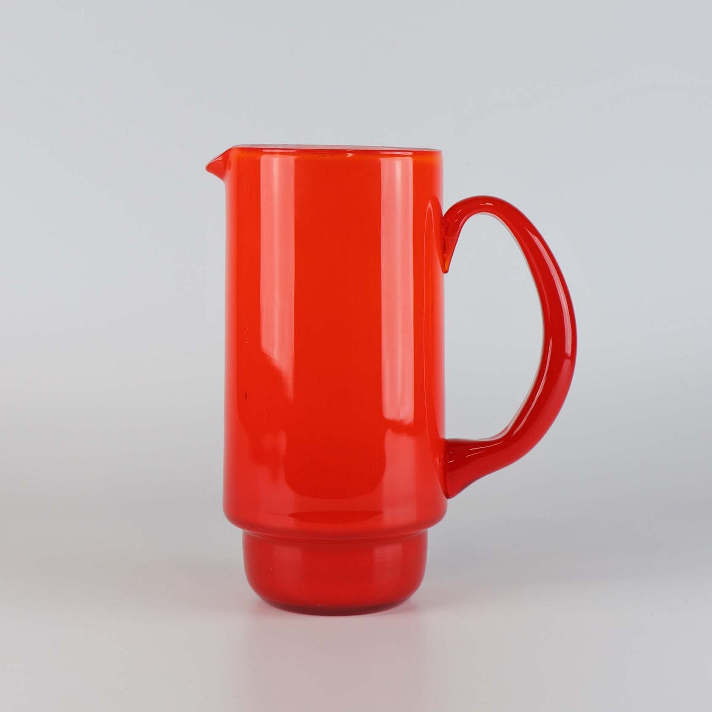 Kande af orangerød mundblæst glas fra serien Palet