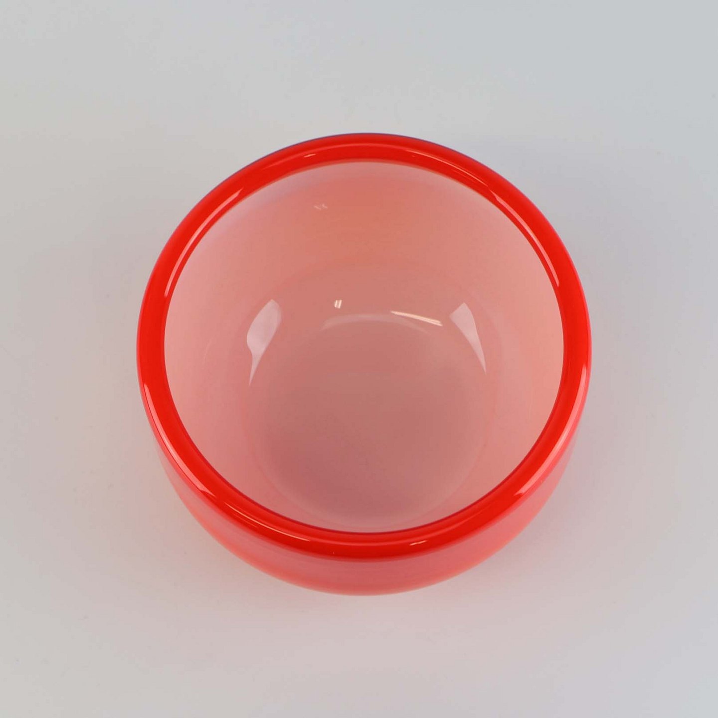 Skål af orangerød mundblæst glas fra serien Palet