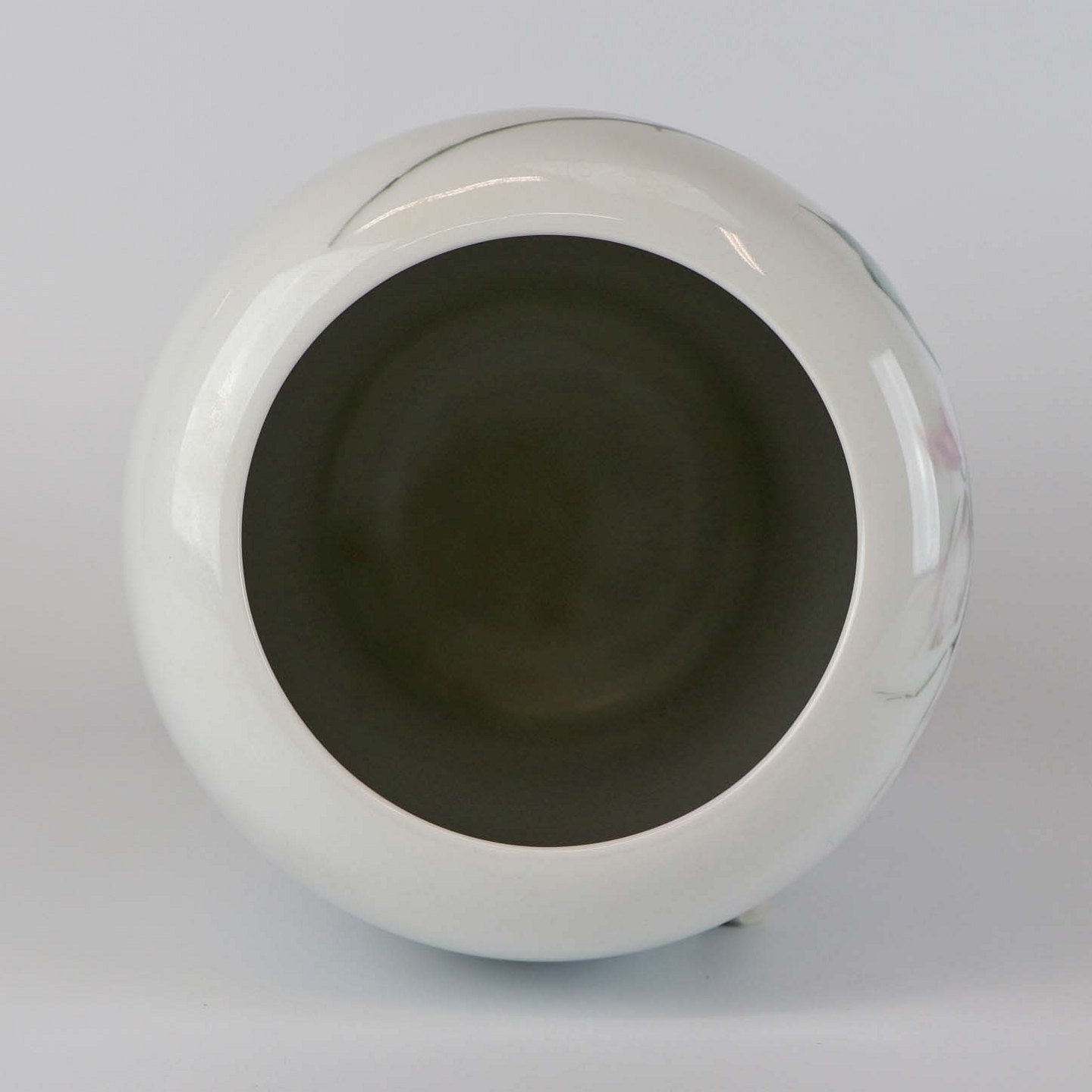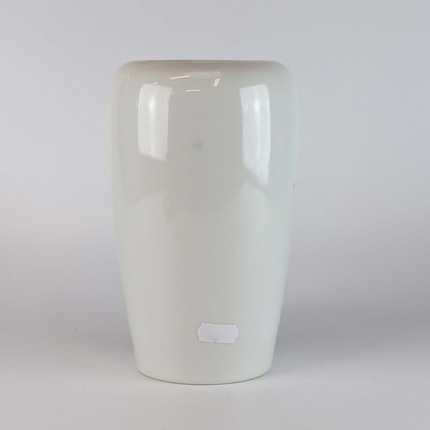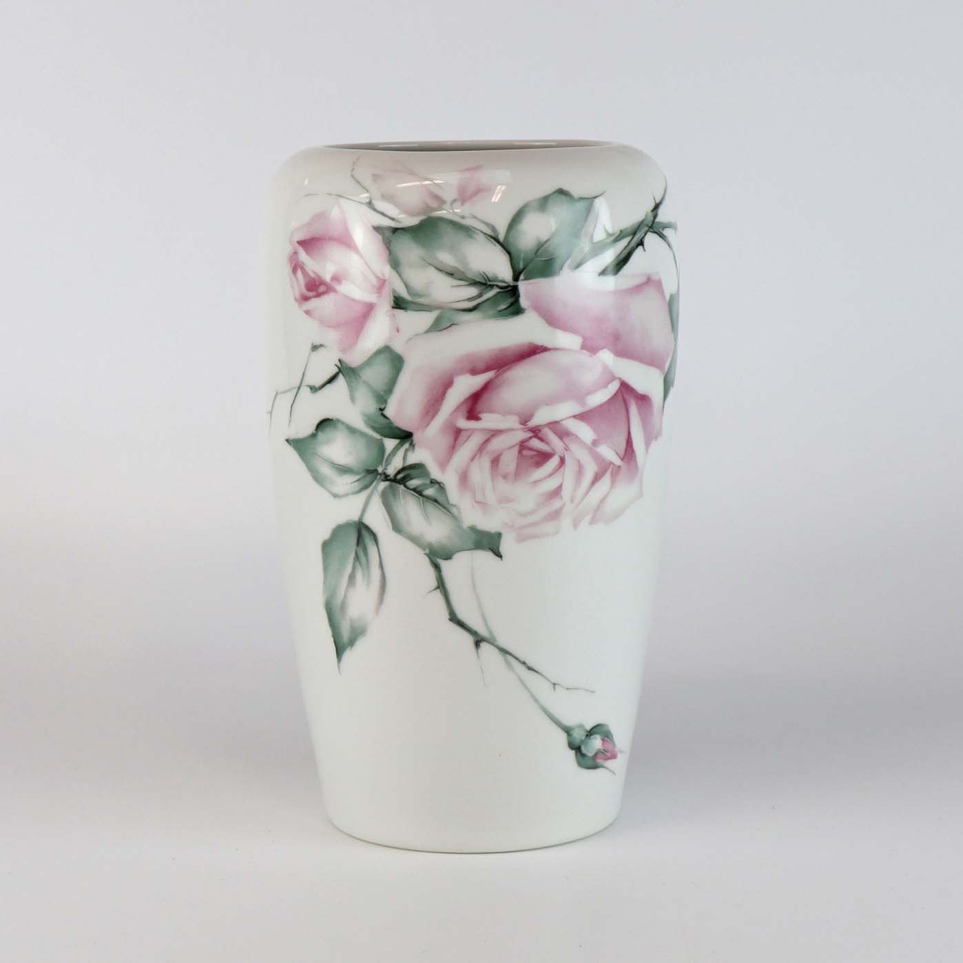 Vase med hvid bundfarve og med motiv af rosafarvet roser