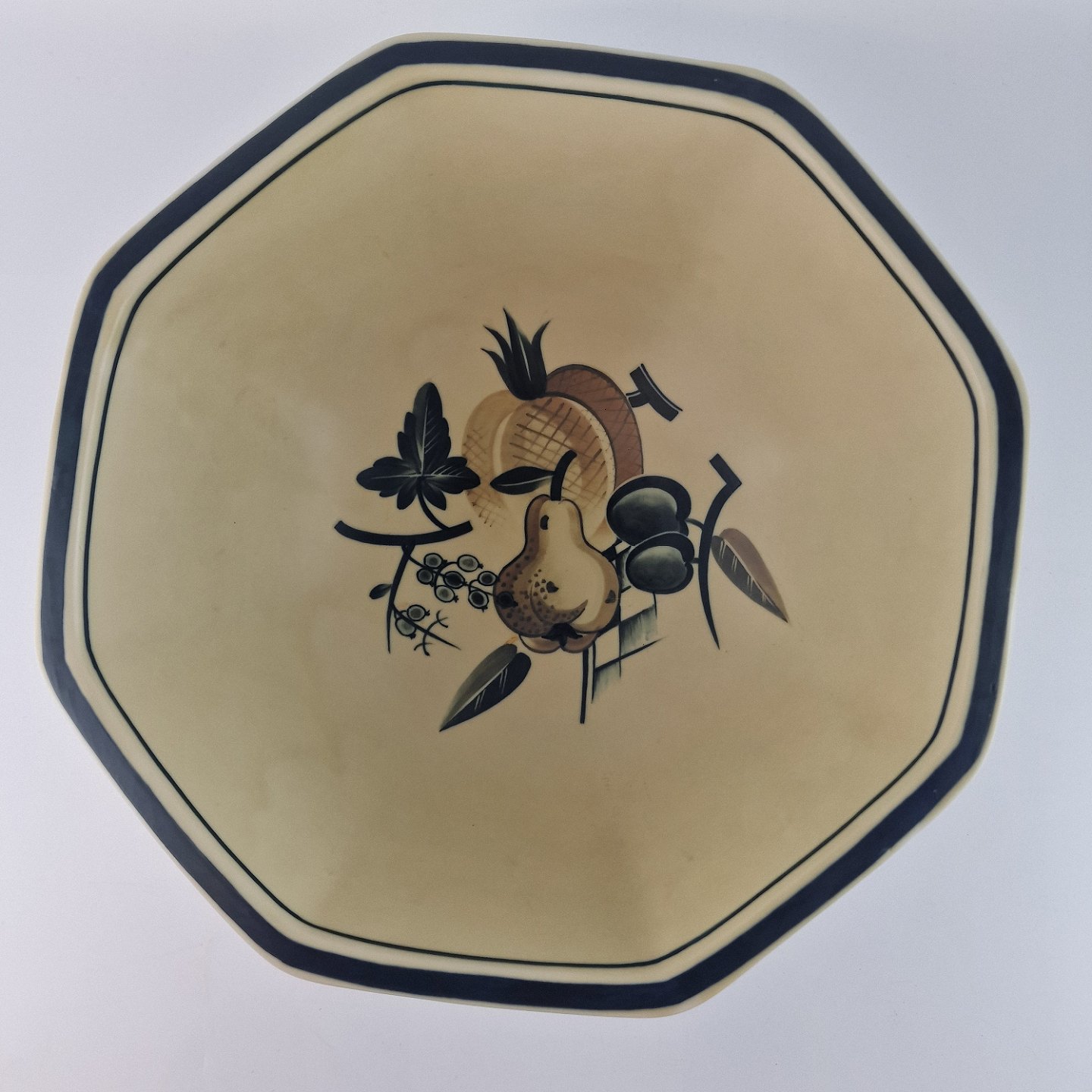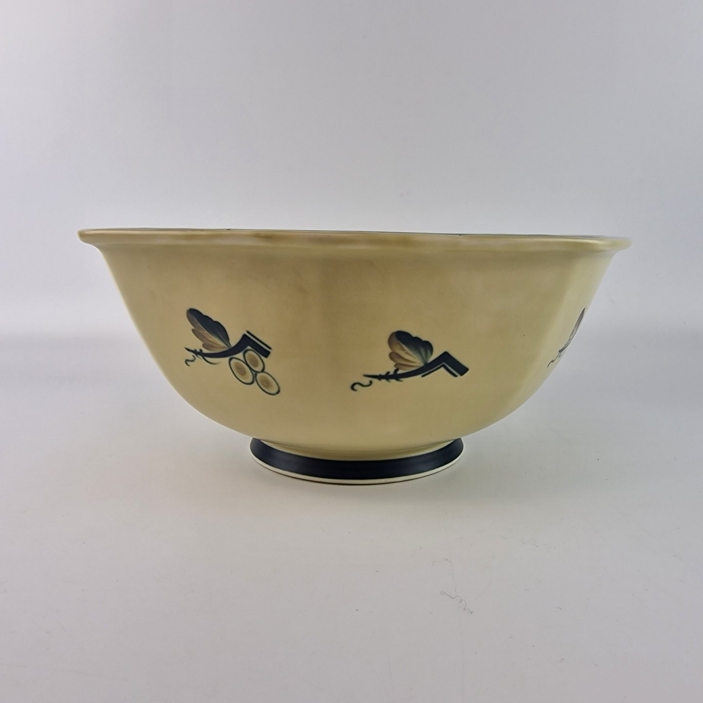 Ottekantet cremefarvet skål dekoreret med blå kant og frugter nr. 53/172