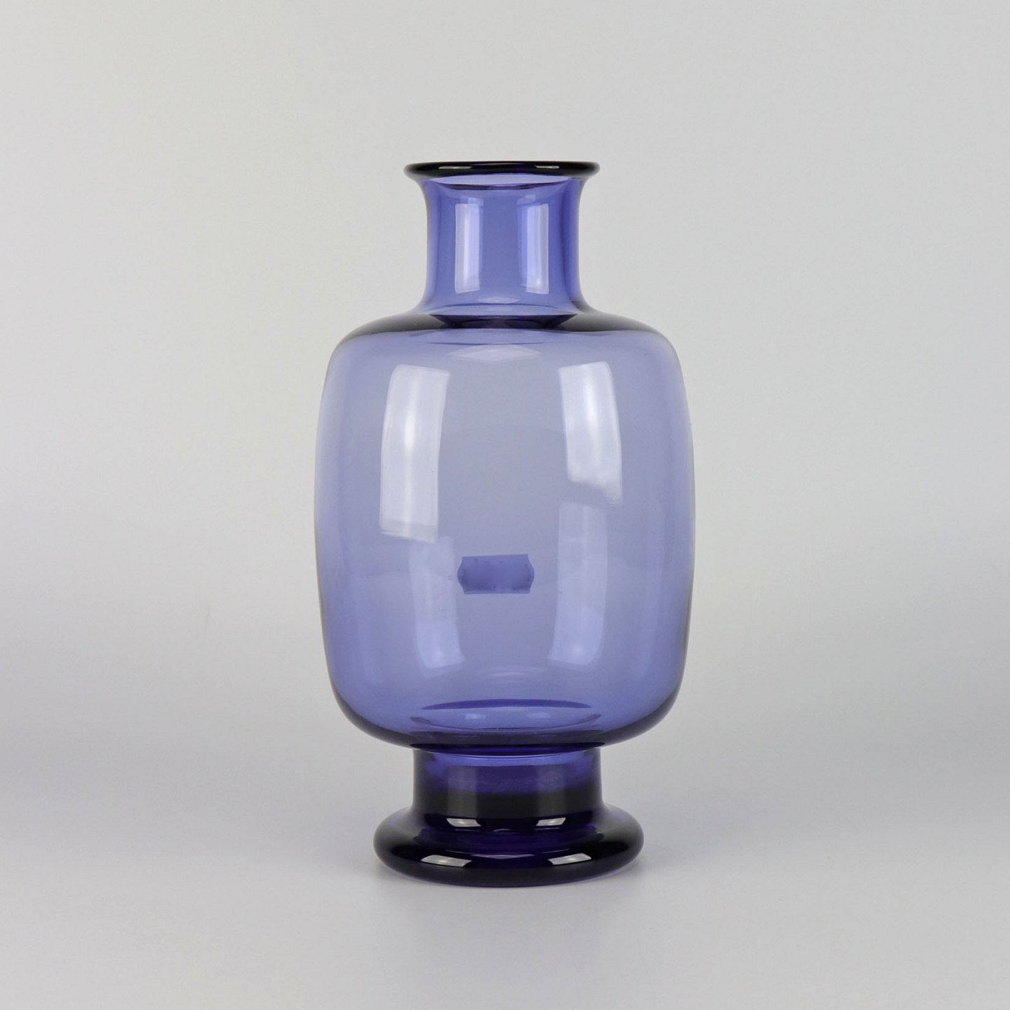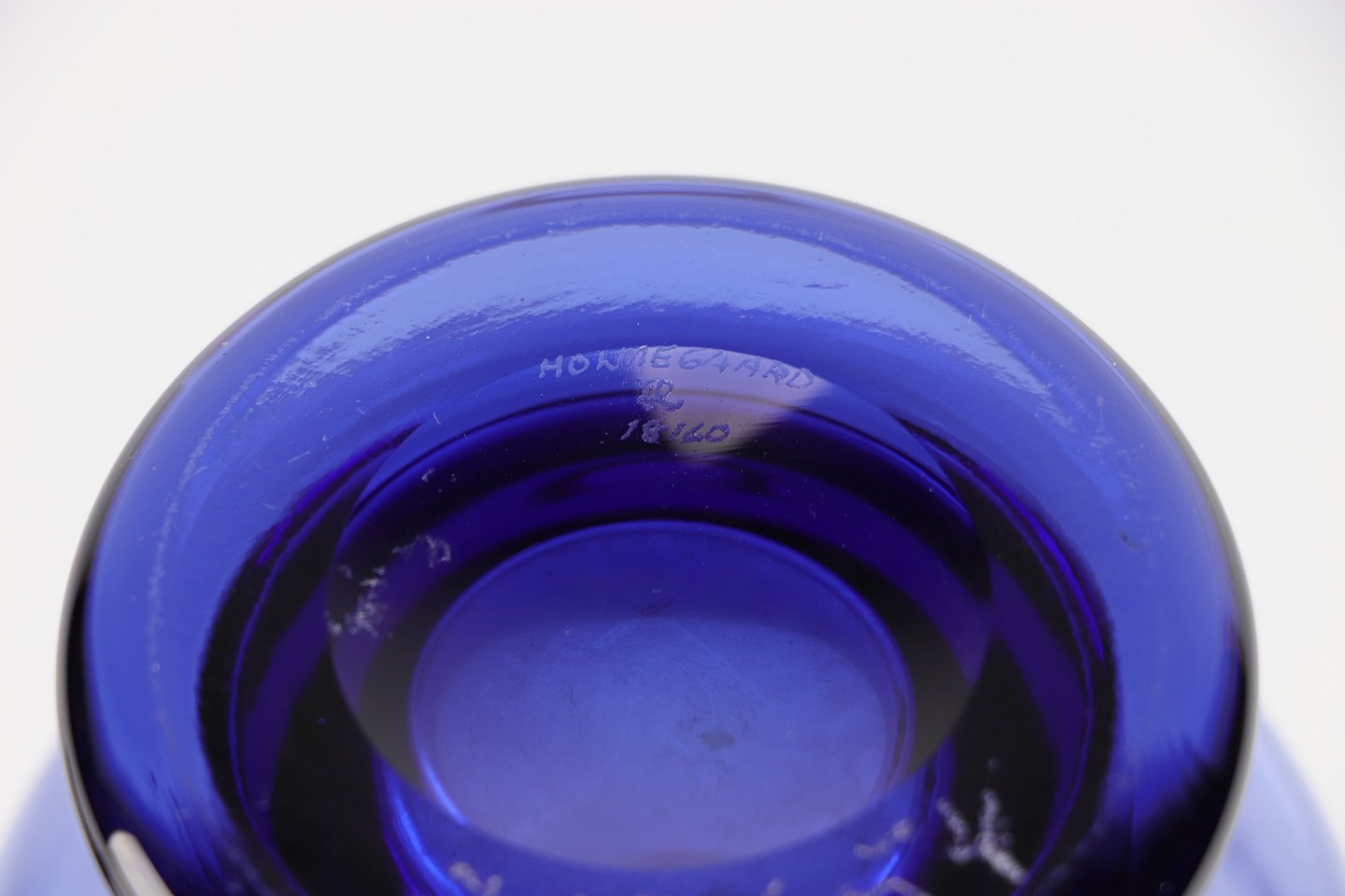 Vase i klart blå glas no 18160. Signeret under bunden.arkivfoto